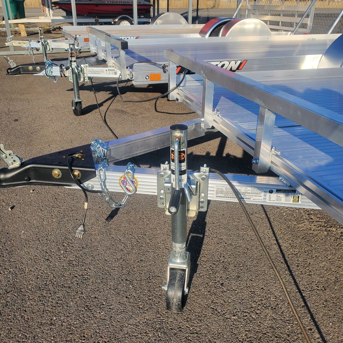 FIT 72x10 Model Number FIT1072-SM / FIT1072-SM2 / FIT1072-A / FIT1072-FRAME Bed Width 72 1/2” Bed Length 120" Deck Type Aluminum Tie-Downs (4) D-Rings Overall Width 93 25/32” Overall Length 158” Ramp Standard Straight Ramp Option Bifold Tilt Bed No Carrying Capacity w/o Brakes 2,472 lb GVWR w/o Brakes 2,995 lb Carrying Capacity w/Brakes 2,977 lb GVWR w/Brakes 3,500 lb Trailer Weight 523 lb Axle(s) - Qty/Rating 1-3500# Idler Hitch Height 17" Deck Height 19 1/4" Wheels 14" Silver Mod / 14" Silver Mod / 14" Aluminum / -- Tires ST205/75D14 / ST205/75R14C / ST205/75R14C / -- Tongue Jack Yes Coupler 2" Brake Standard -- Brake Options Electric