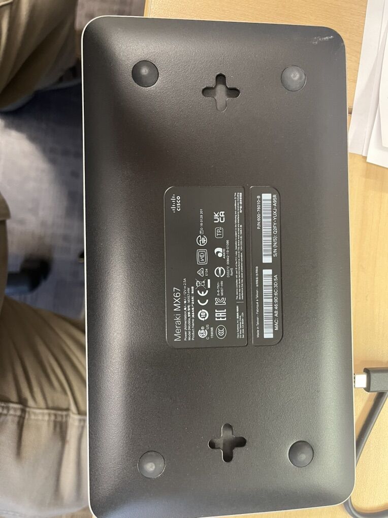 This is a Cisco Meraki MX67 switch. Has power cords works great