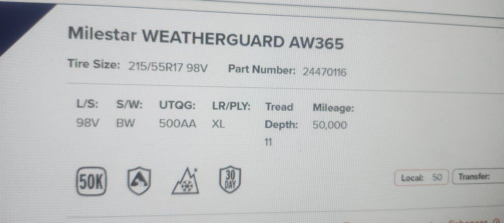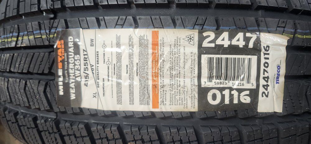 BRAND NEW SET OF 4 TIRES 215/55R27 MILESTAR WEATHERGUARD AW365 ALL WEATHER ALL SEASON 50K MILES WARRANTY NEVER MOUNTED WE CARRY OVER 200 SIZES AND CAN GET ANY MAJOR BRAND TIRES!