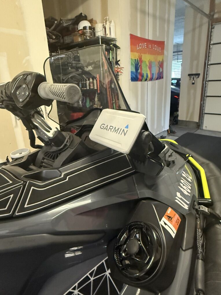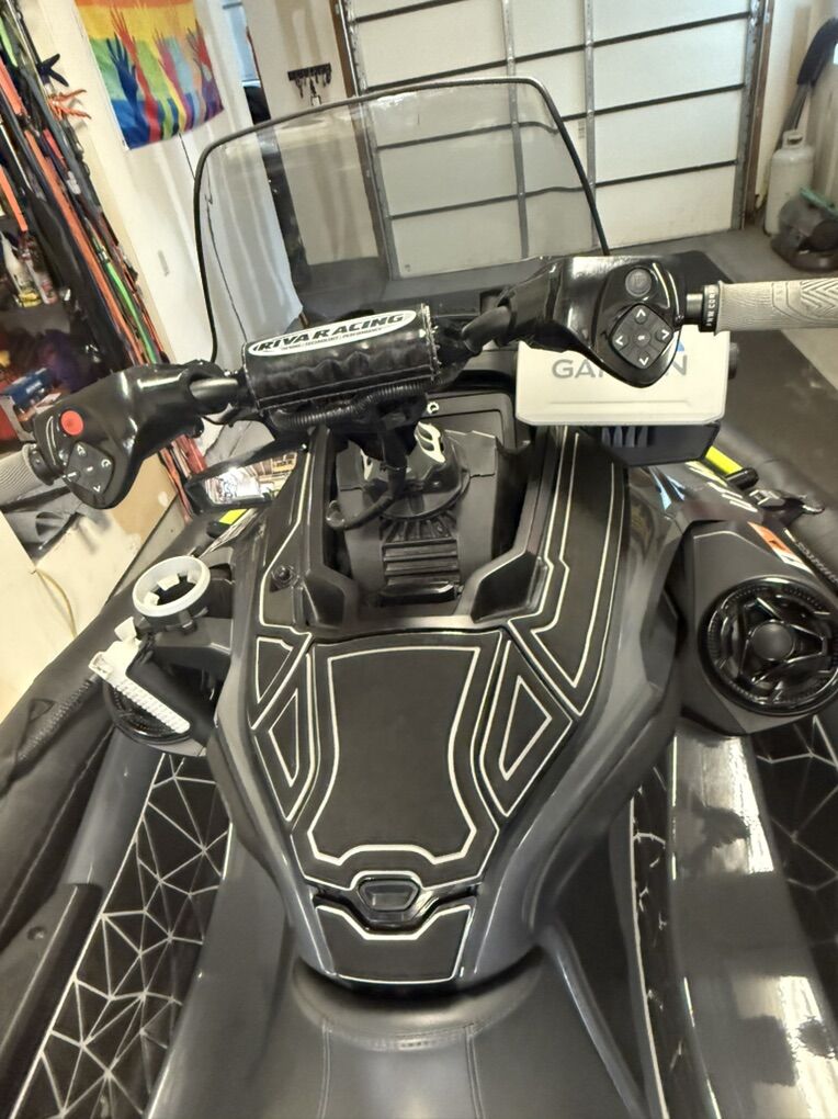 The 170 is equipped with RIVA Pro sponsons, dual battery kit, RIVA handlebars, single Garmin gps, aftermarket grips, stereo and black foot braces.