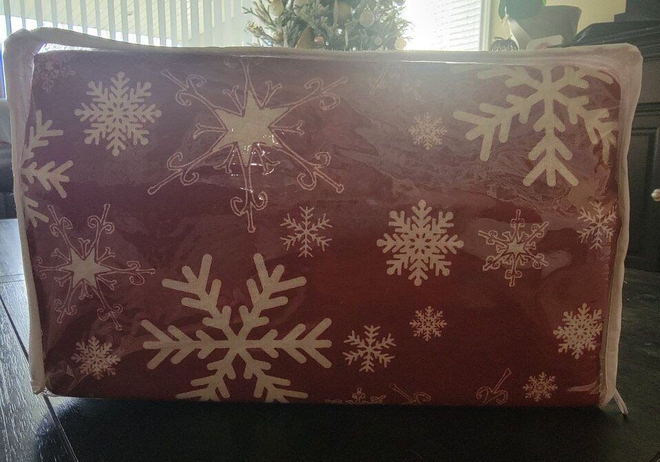 VenmoRed with white snowflakes flannel sheet set. Everyday Living brand. King size. Never used.