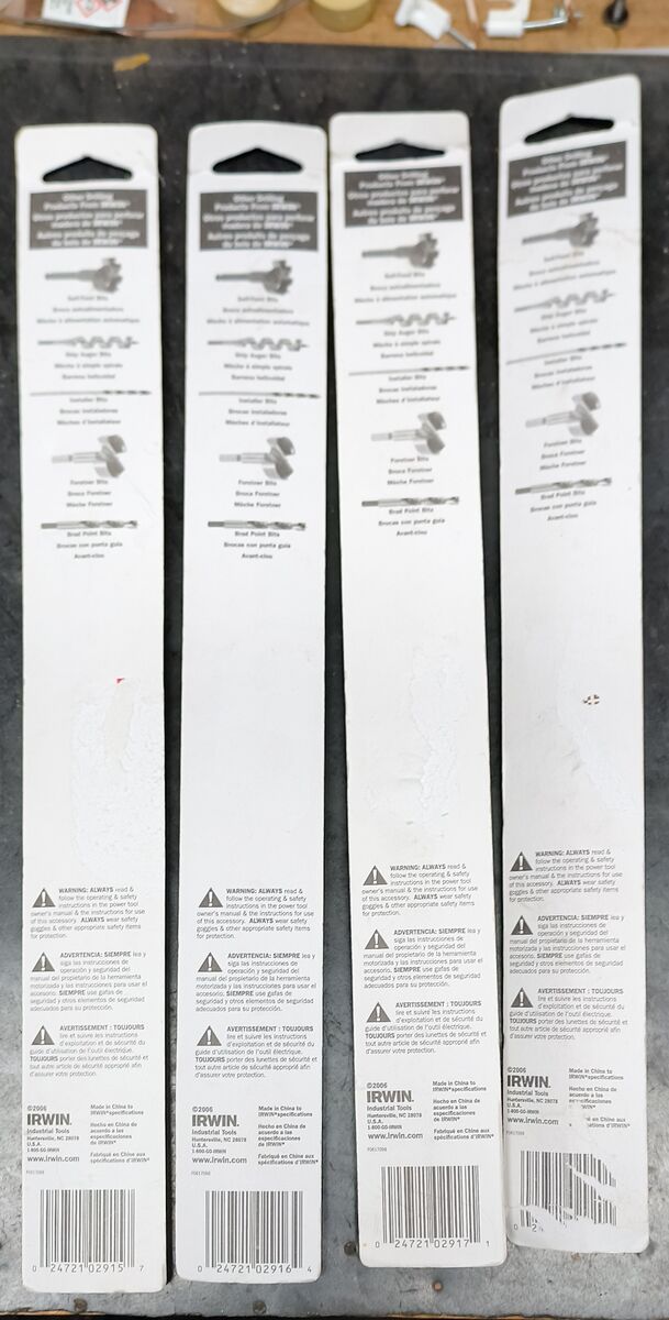 ZelleAll one price, 4 Extended Length Irwin Masonry Drill Bits still sealed. 4 Different Sizes to cover all your needs. Packages have not been opened, brand new. Sold all for one price, not sold separately. Could ship for $15. Looks like the retail on these is around $10 or $15 each. Pick up here in Heyburn.