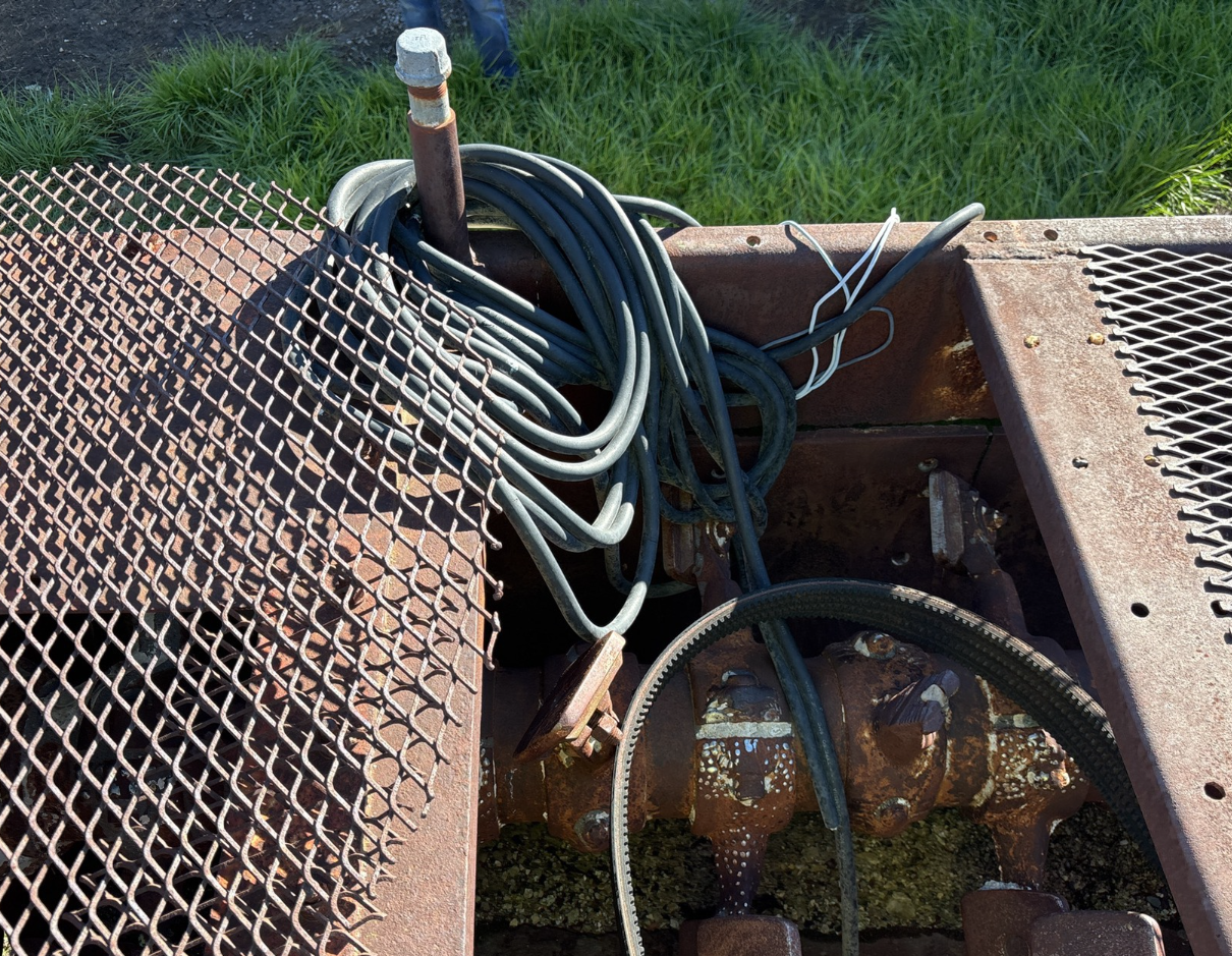 For sale is a heavy-duty twin-shaft industrial pugmill with a 9’7” long x 48” wide mixing chamber. This is ideal for asphalt cold mix, soil cement, RAP/ emulsion blending, stabilization, and aggregate mixing. Includes full twin-shaft mixer box, platform and stairway, shaft coupler, discharge cone, flexible boot, and electric-operated discharge gate. Manual gate controls are also present. The main drive motor, reducer, and chain system were removed. Mixer shafts and internal assembly appear intact. Excellent rebuild candidate or can be repurposed for custom blending operations.