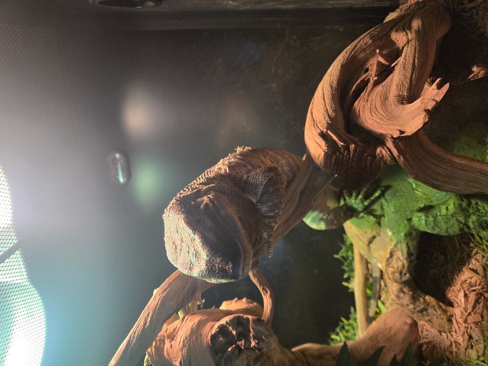 Hi, my black throat monitor is looking for a new home, she is about a year old and around 24inch in length, she still needs to be worked with on being handled, she only hisses and has never bitten. I unfortunately do not have the time for her anymore, she is tong fed and it is hit and miss on when she allows you to pet her, doesnt like being picked up though. This is not a starter lizards. must be knowledgeable on the care and requirements. Asking $450 possible trade for rhino iguana