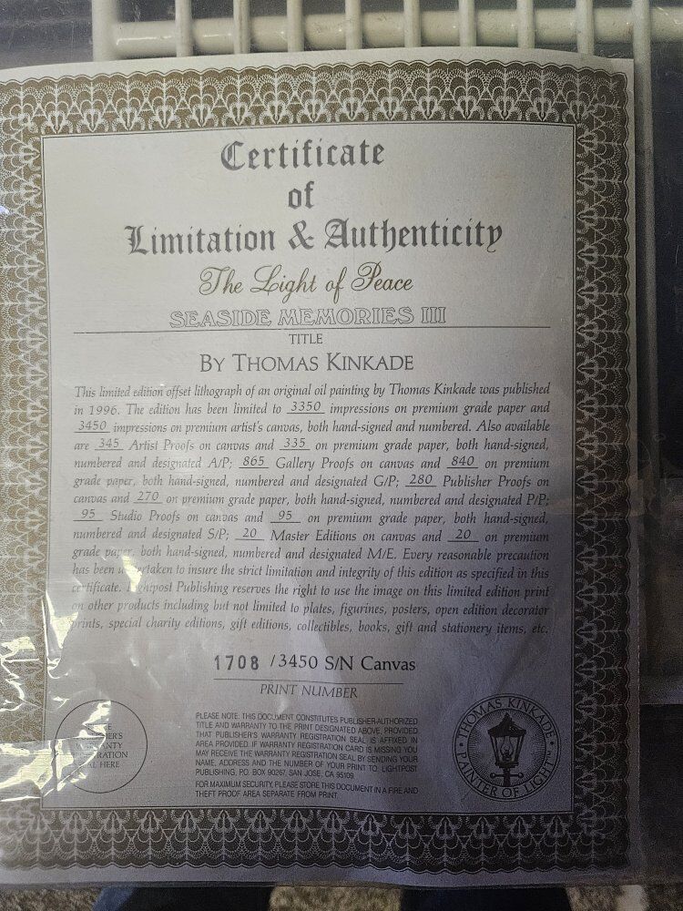 VenmoThis is a Thomas Kinkade print on canvas and a beautiful frame. 36 x 24. It has a authenticity document included. We'll let you enjoy it.