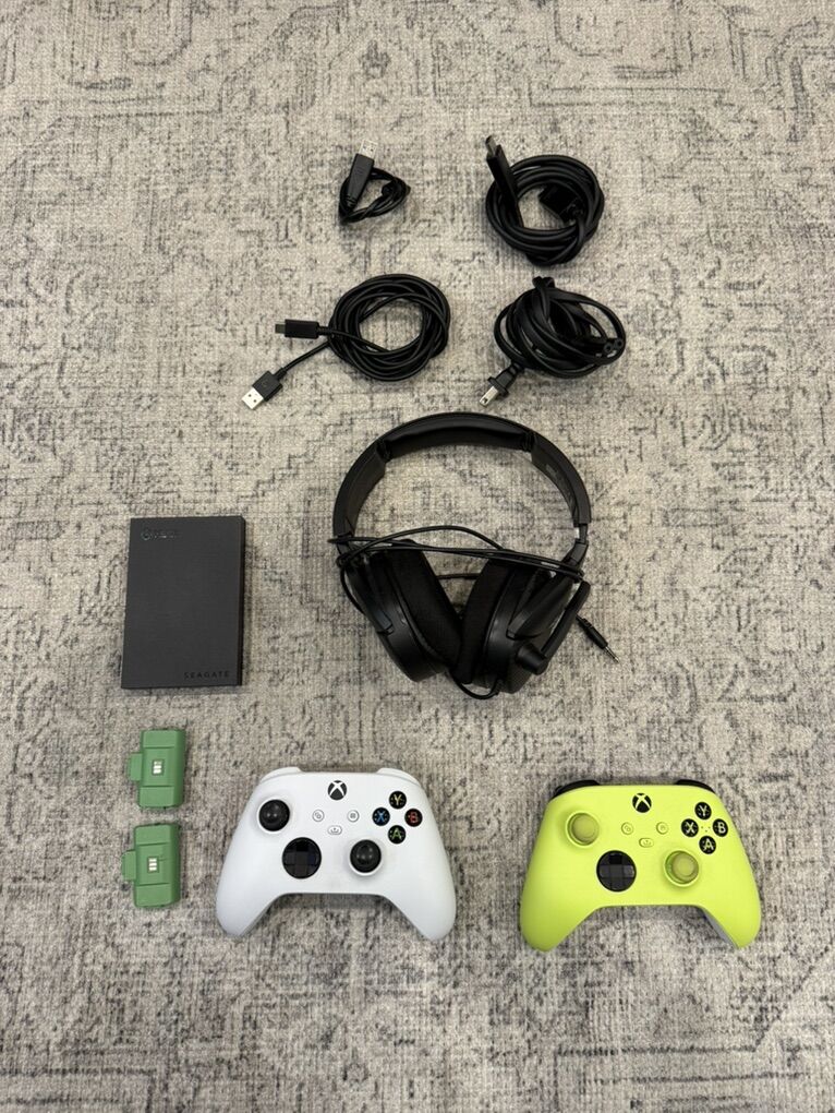 ApplePayTons of accessories and rechargeable battery’s, a headset and a storage drive. Also has 2 controllers and works perfect.