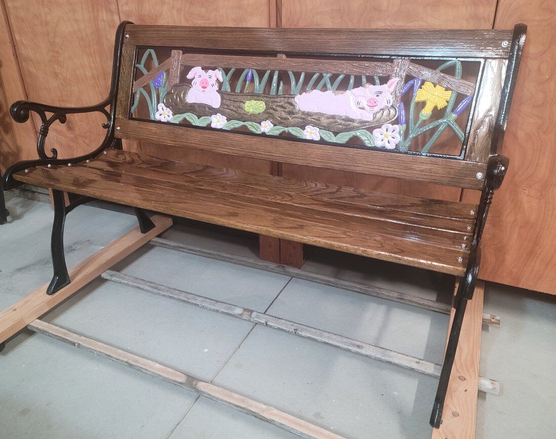 VenmoI just finished restoring this one-of-a-kind wrought-iron bench. The metal-back has been hand painted and then given three coats of a clear-coat to keep it looking good for years to come with a little preventative care. Who says you can't put lipstick on a pig?...;-) It's made of 3/4" solid oak, then stained a dark walnut color, then given three coats of an oil based exterior grade spar verathane. I also used all stainless steel hardware so it'll never rust. Asking $500 or best offer. Any questions, feel free to text me. Thanks for looking!!