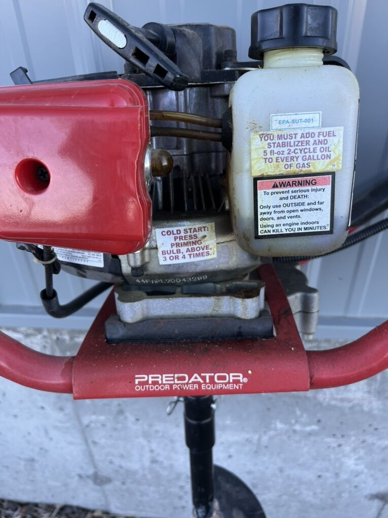 Predator dirt auger with 6” bit. It is in great shape, seriously only used once! I have kept stabil in it and started it every now and then and it starts up quickly every time. It is more dusty from sitting in the shop than anything. Located in Ammon.