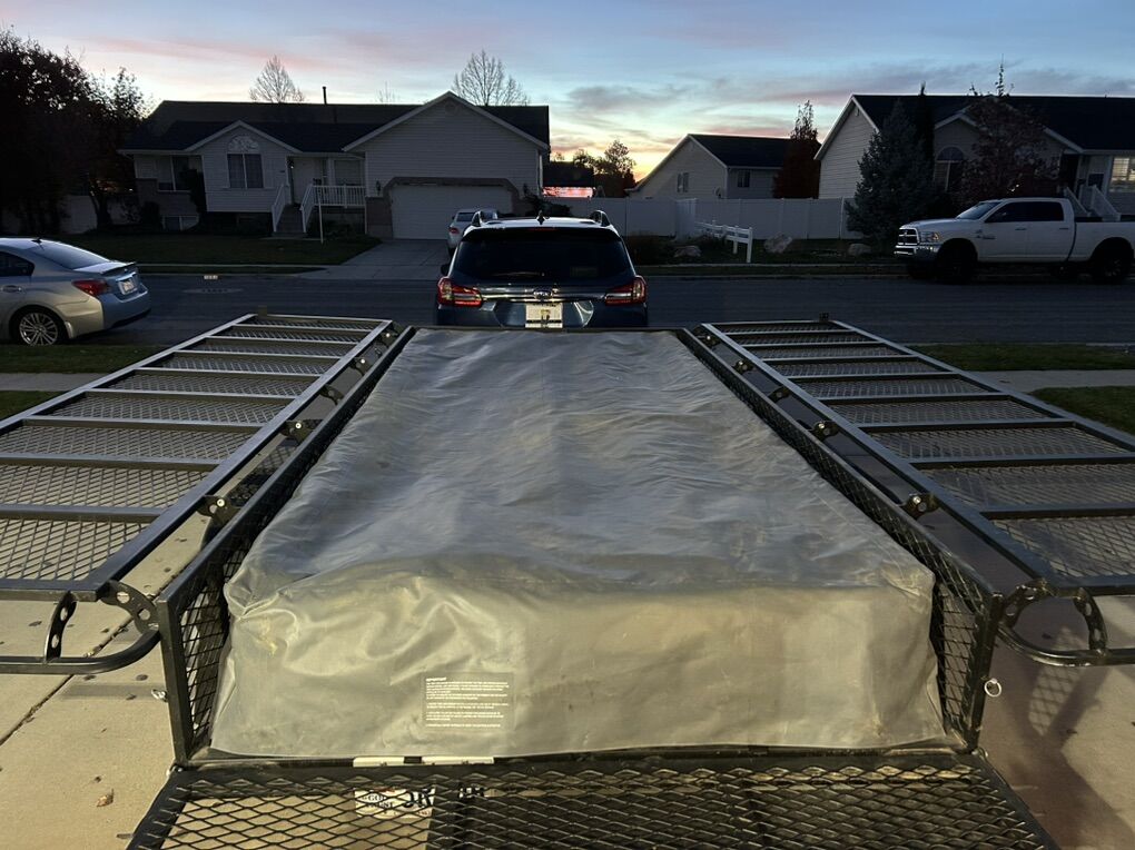 Utility Mode (without tent) dimensions: Tandem 3500 lb. Torsion Axles. 68” x 148” x 56” (326 cubic feet).