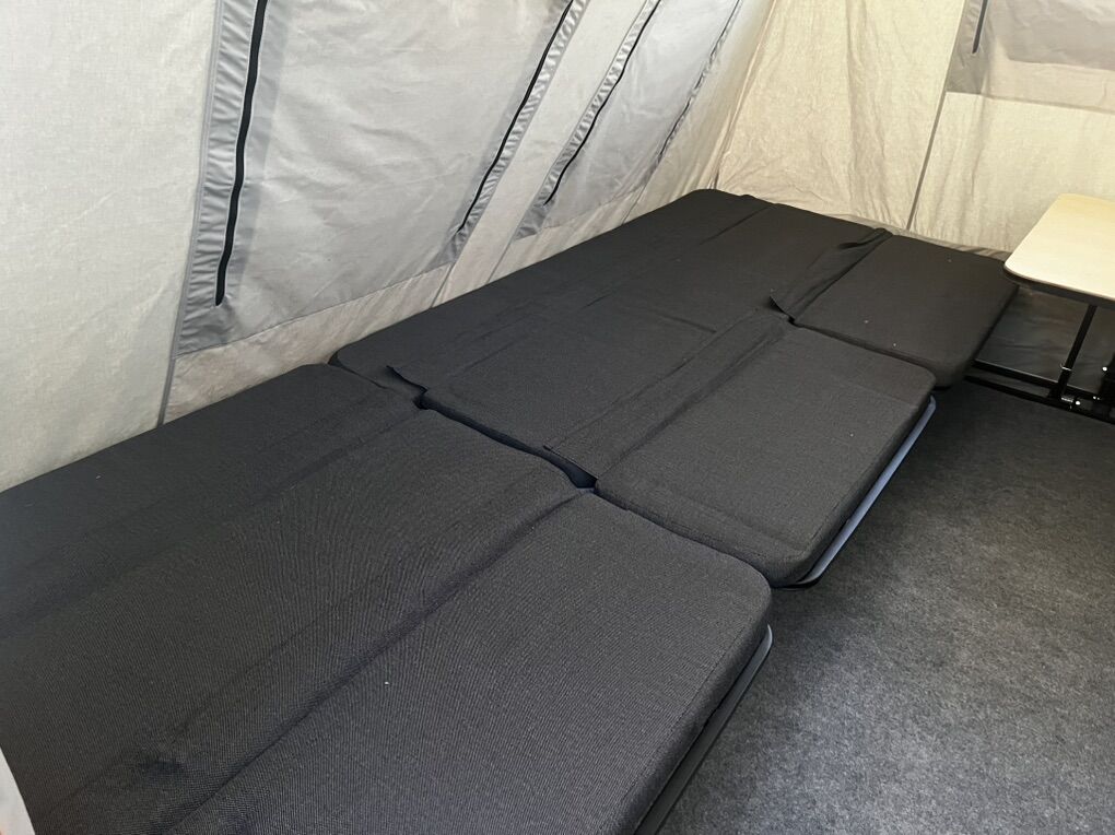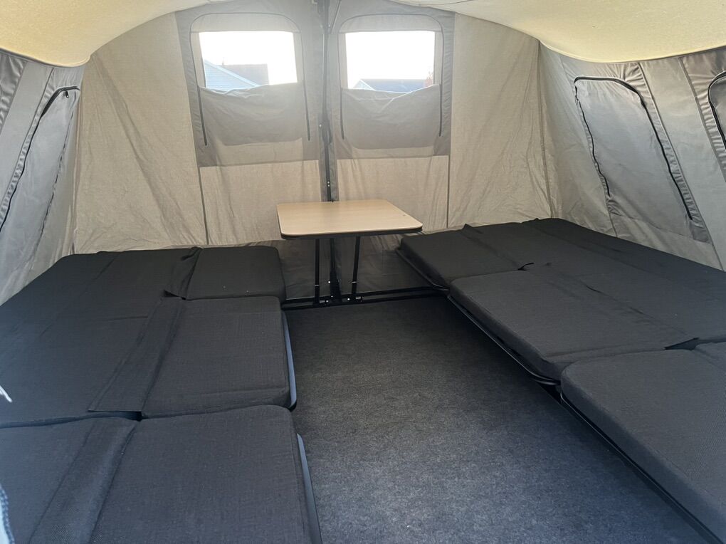 Extras included: Water rack, cooler rack, large awning, kitchen set, lantern post, 5 half bed extensions.