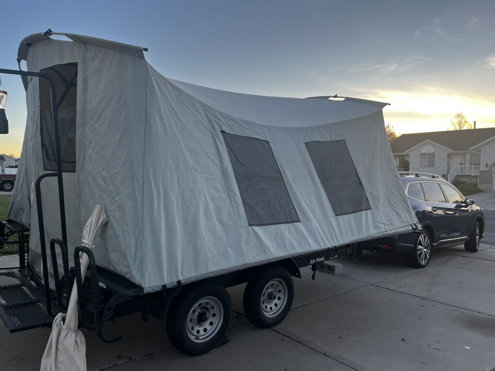 PayPal2021 Jumping Jack Jump Up Tent Trailer. Mid 6’x12’ size. One owner. Great condition. Only used a few times. Tent can be pulled out to be used as a trailer. Standard package and extras included.