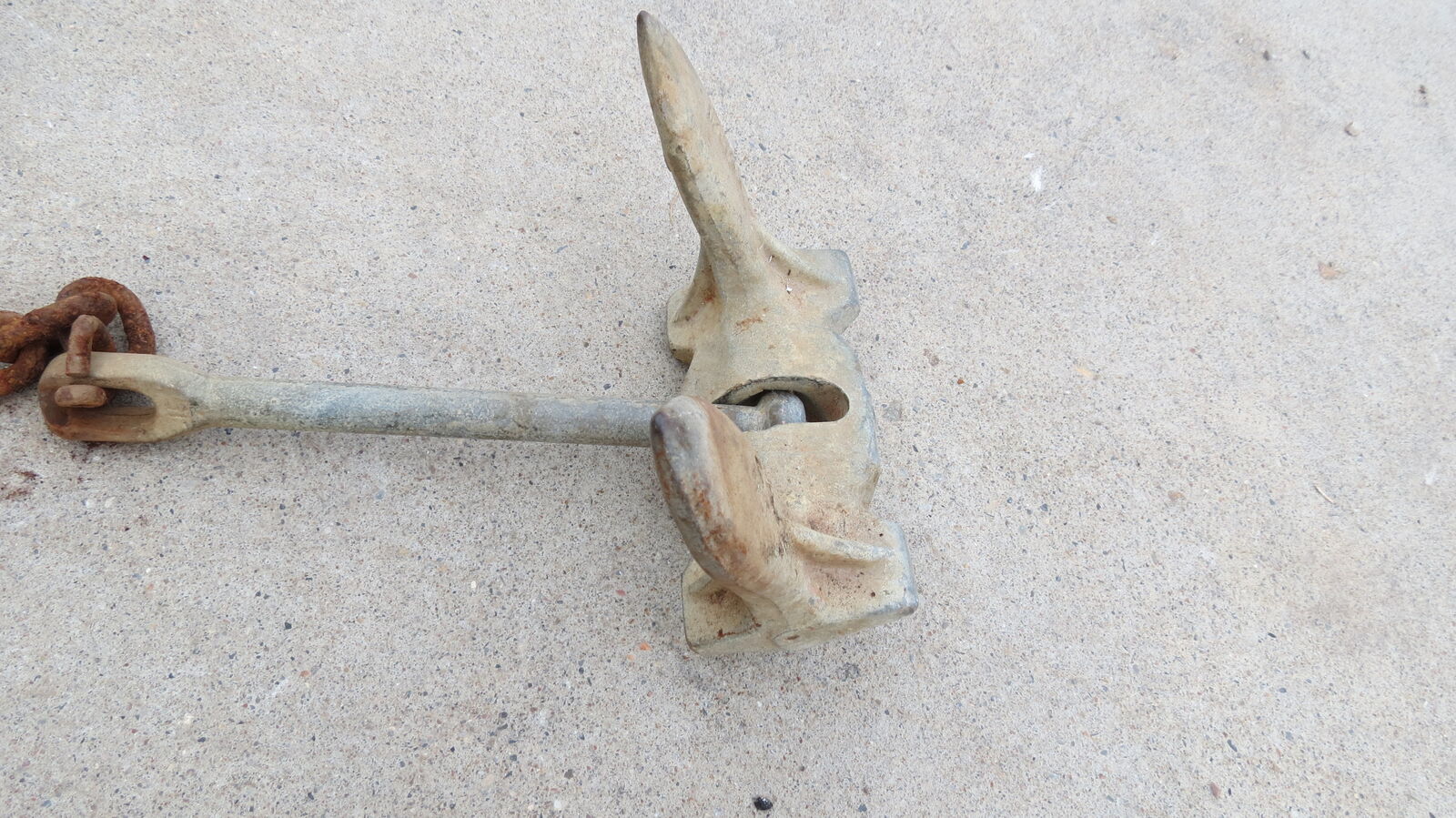 15 pound anchor with a chain that weighs almost 10 pounds. The chain is what makes the anchor work in a proper setup. May be able to meet somewhere that is good for both of us. Please phone or text for best results.