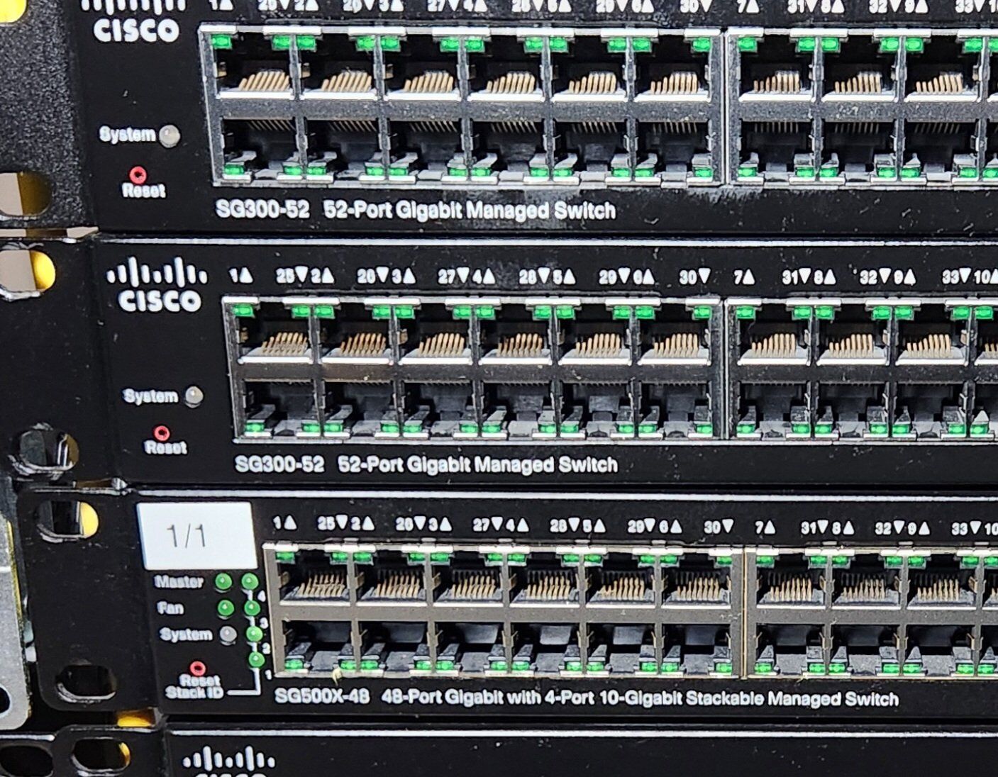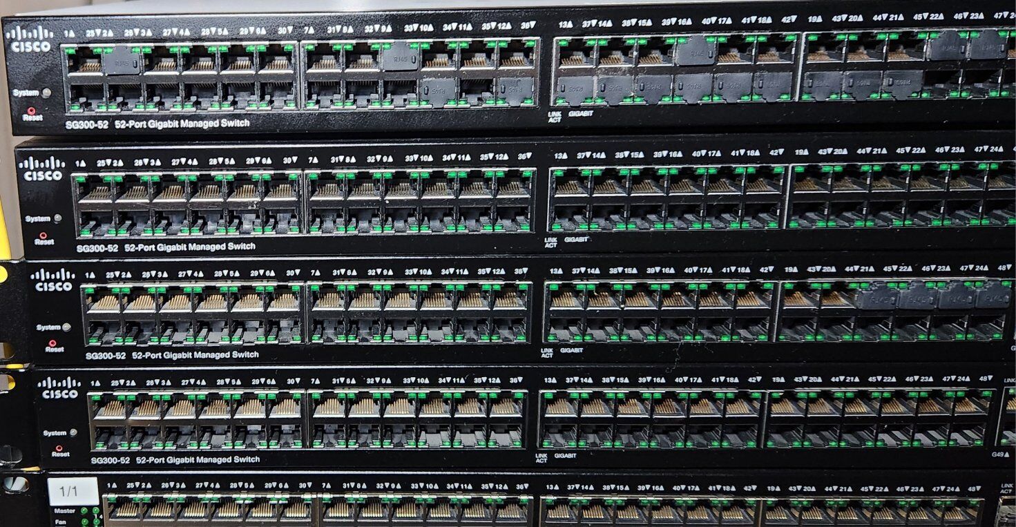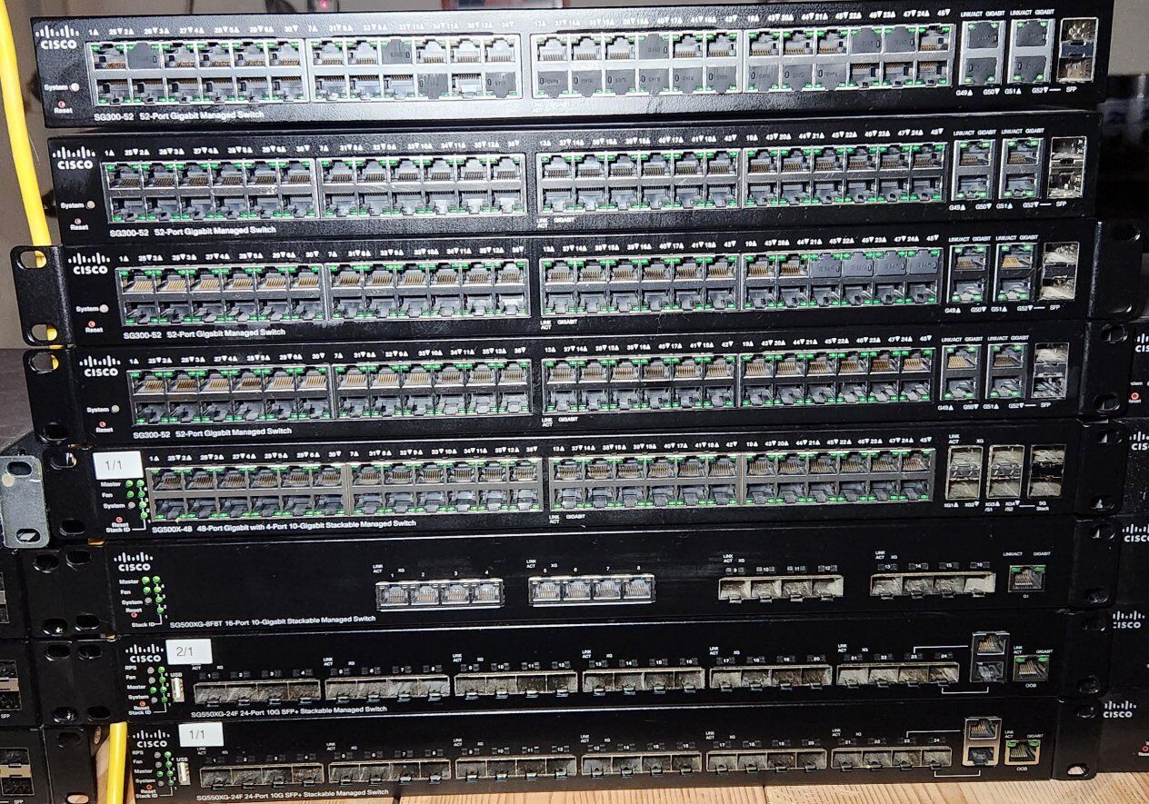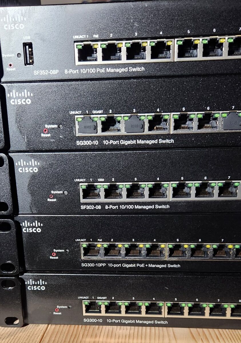 here is the list 2 x SG550XG-24F $100 1 x SG500X-48 $100 4 x SG300-52 $50 3 x SG300-28 $50 1 x SG300-20$40 2 x SG300-10 $20 1 x SG300-10pp $20 1 x SF352-08p (8 100Mb ports, 2 1GB combo ports) free 1 x SF302-08 (8 100Mb ports, 2 1Gb combo ports) free