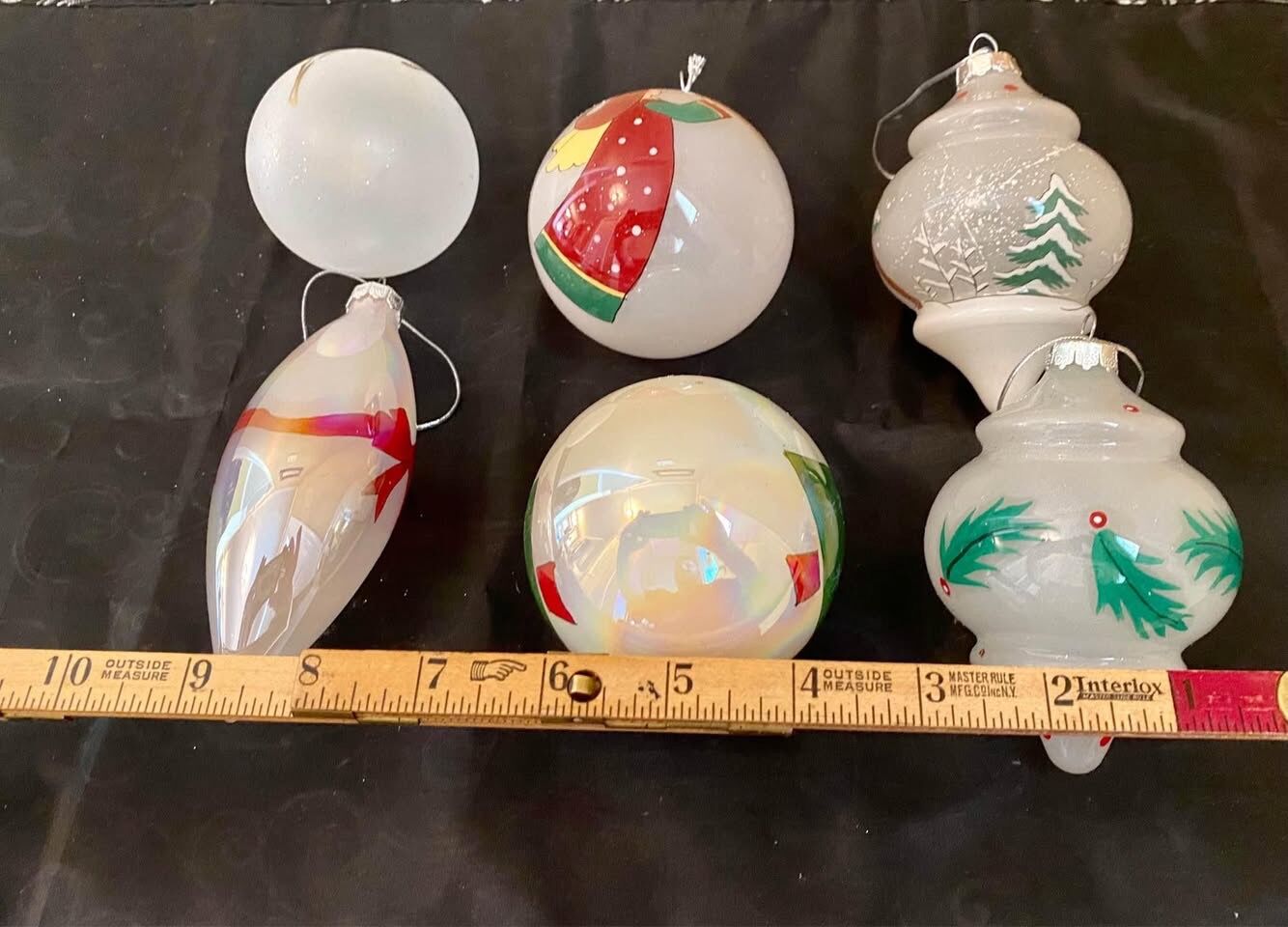 SET OF SIX - Gorgeous LG Glass Handpainted Ornaments - These reflect the light beautifully- C PICS.
