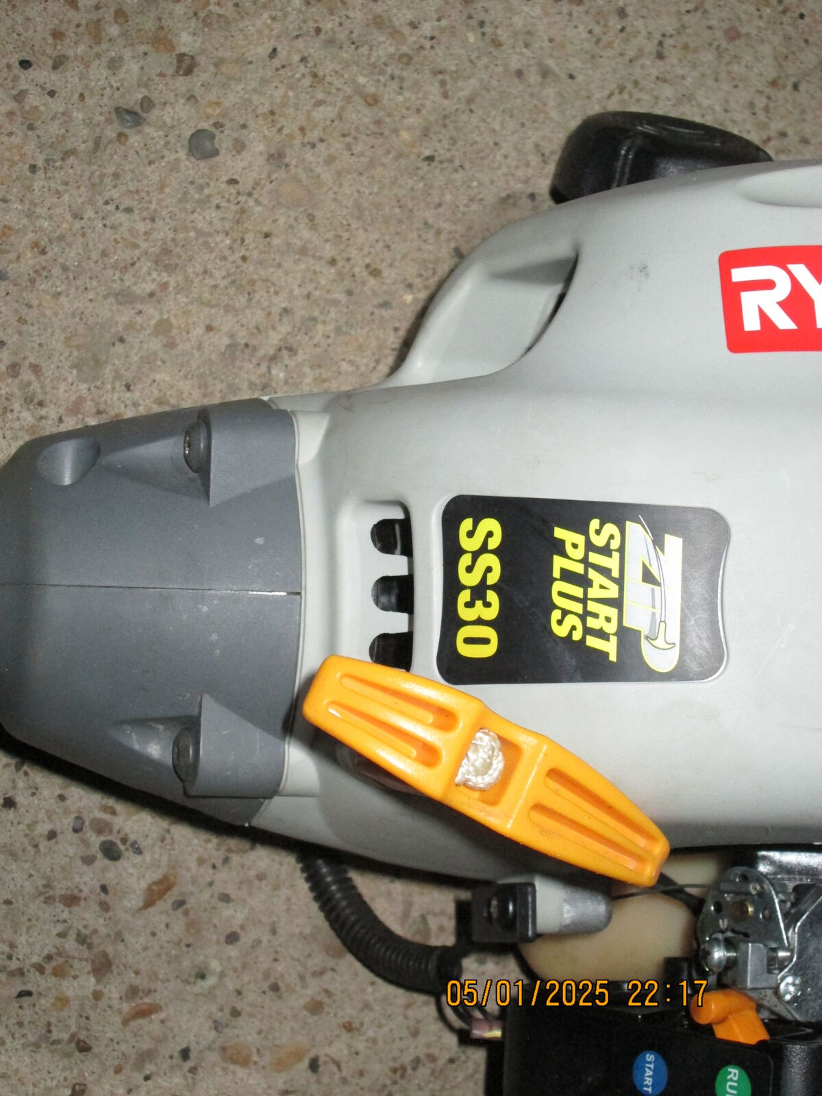 RYOBI SS30 LINE TRIMMER - 30cc 2 STROKE ENGINE - STARTS RIGHT UP AND RUNS EXCEPTIONALLY STRONG - THIS MACHINE HAS SEEN VERY LITTLE USE , THE PICTURES SPEEK FOR THEMSELVES - EASY LOAD SPOOL - IT'S ALL READY TO GO TO WORK - EVERYTHING WORKS AS IT SHOULD - CALL IF INTERESTED - I DON'T ALLWAYS ANSWER MY PHONE RIGHT AWAY , BUT BE PATIENT I WILL GET BACK WITH YOU - THANKS FOR LOOKING