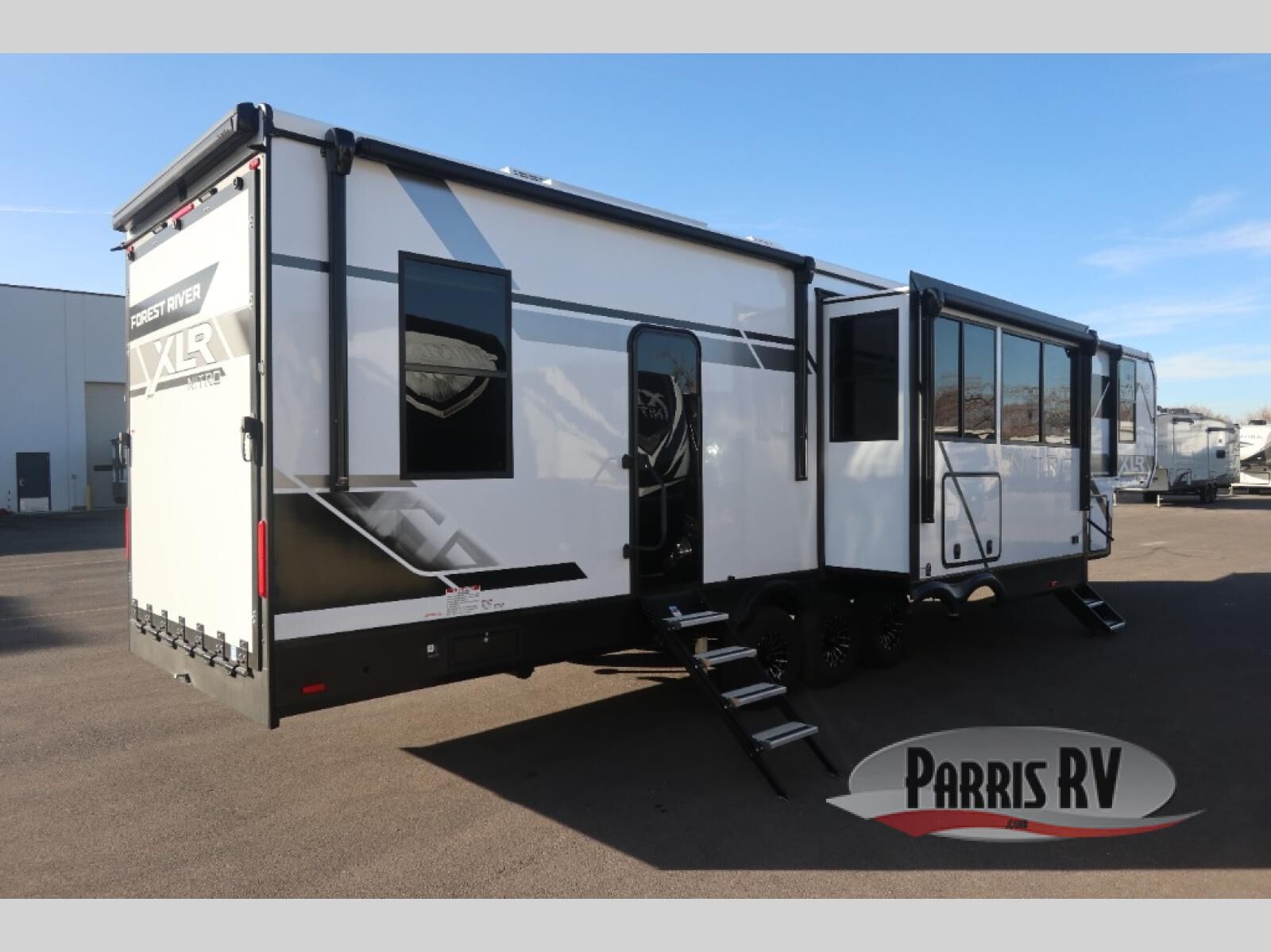 The outdoor enthusiasts have met their match with the XLR Nitro toy haulers by Forest River. The vacuum-bonded aluminum framed sidewalls, high gloss fiberglass exterior, and one-piece roof membrane are just a few durable construction materials you will find on these models. There is a weatherproof insulated ramp door, 5,000 lb. cargo tie-downs, a 40 gallon fuel station, and more convenient garage features that will make camping with toys easier than ever. You'll appreciate smooth towing thanks to the MORryde CRE3000 suspension enhancement and 16" Goodyear Endurance tires. A 200 watt roof-mounted solar panel, along with electric awning(s) with LED lights, undercarriage lighting, and friction hinge entry door(s). Some of the innovative technology features include a Winegard Air 360 antenna with WiFi prep and 4G LTE, convenient USB charging stations. You will also find diamond solid surface kitchen countertops, residential tile backsplash, hardwood cabinet doors, hardwood window trim package, and many more interior comforts.