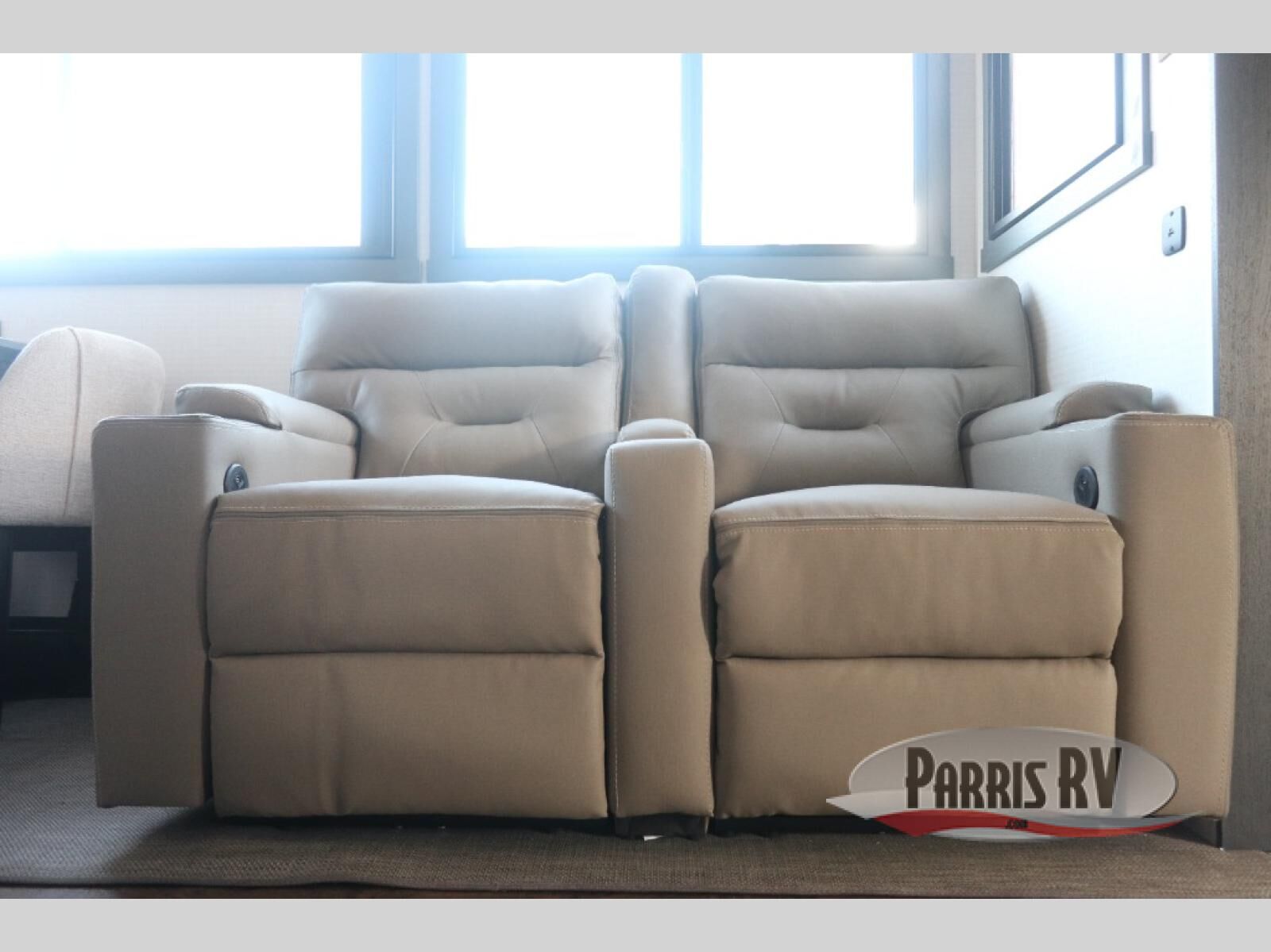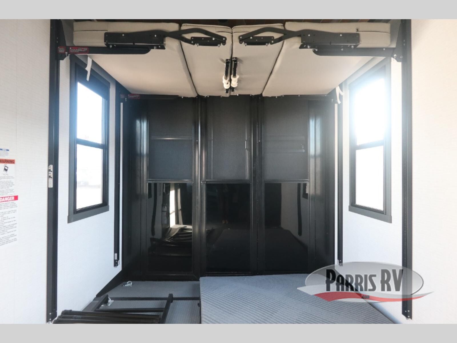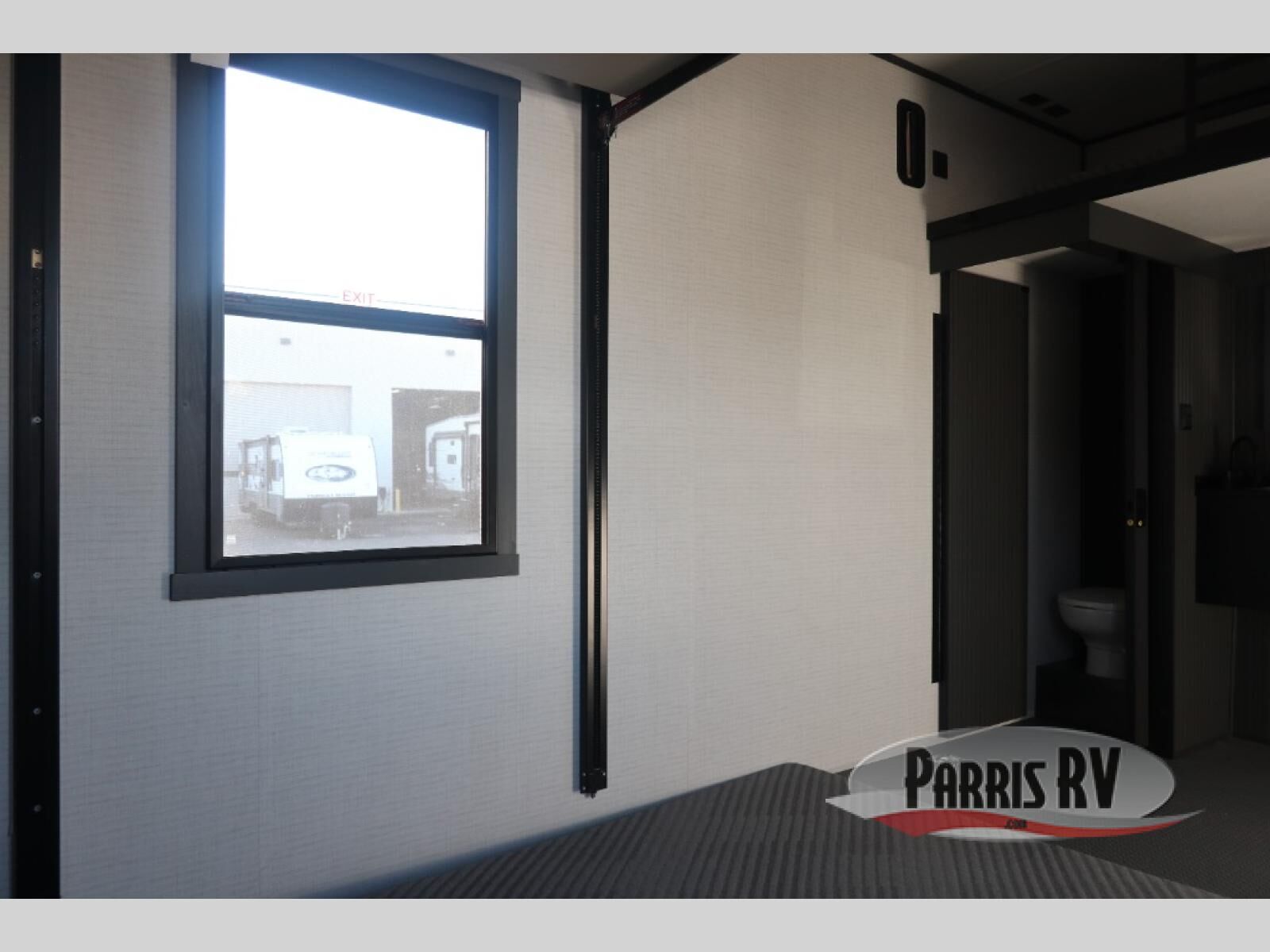 When you're ready to kick up some mud, hitch this toy hauler up and head out! You can set up the patio deck once your toys are removed from the 14' separate garage and relax with a cold drink. You'll find seating space on the Sit N Sleep roll-over sofas with a removable dinette table in between, and the Sleep N Store electric queen bed will provide sleeping space for your guests. There is also a loft and a half bath for even more convenience. Head through the garage glass sliding doors to the living area with an L-shaped sofa and theater seating or start lunch in the middle kitchen with ample counter space. There is even a free-standing table and chairs like you would find at home. The full bath up front lets you clean up after a trail ride and the front private bedroom will have you feeling right at home. With a 66" x 80" king bed slide out, along with a large front wardrobe with washer and dryer prep, plus a dresser and TV backer if you want to add your own TV.