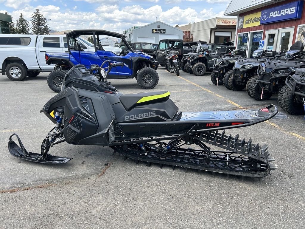 2023 Polaris® Patriot 9R RMK Khaos Slash 163 3"The World's Best All-Mountain SnowmobileFeatures may include:Ultimate LiftThe Matryx Slash features a lightweight, tapered tunnel delivering unrivaled traction and lift in all conditions.RMK React SuspensionThe RMK React Suspension provides riders with the most precise and effortless ride in the deep snow. Effortlessly initiate sidehills and experience less fatigue with the most predictable ride. It includes a 36"-38" stance, a sway bar designed for predictable handling, and forged a-arms and spindles optimized for strength and durability.RMK Khaos Rear SuspensionThe new rear suspension geometry provides transfer and traction for light handling and control and the best response in all riding zones.Ultimate ControlThe slashed and tapered tunnel features drastically improved snow clearance, minimizing drag and maximizing control on the most insane slopes. A new centralized, lightweight cooling system, bonded carbonfibre and aluminum-forged components significantly cut the real-world weight of the sled, maintaining the highest level of flickability and delivering class-leading power to weight ratio.Centralized Cooling SystemThe lightweight cooling system reduces ice and snow build up, working with the short, tapered tunnel. Not only is the dry weight reduced, the real world weight of the sled through the snow is reduced.7S DisplayPlan, track, and share your ride with the industry-leading 7S Display with Ride Command Technology. The 7-inch glove touch display is purpose bulit for snowmobiles, with on board diagnostics, trail maps, points of interest, and vehicle to vehicle Group Ride technology to see your ride group with or without cell coverage.Walker Evans Racing SuspensionThe RMK Khaos Sash is equipped with premium Walker Evans Racing Velocity shocks for the best of the best in various mountain conditions. Complete adjustability to dial in the ride with high and low speed compression adjustment.