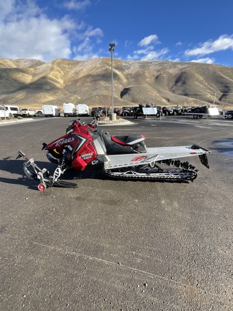 2021 Polaris® 850 RMK KHAOS QD2 165 2.75"Agile and Ultra Responsive on All-Mountain TerrainDiscover RMK KHAOS 165The Perfect All-Mountain SledFeatures may include:All-Mountain ArchitectureThe most agile mountain sled - ever. Designed for all riding zones for a lively and dynamic backcountry experience.AXYS ChassisThe raised AXYS chassis increases clearance and reduces drag to keep you on top of the snow. It is purpose-built for mountain riding and allows for faster and easier climbing and instantaneous lift to pop onto the snow faster. The aluminum over structure is lightweight and durable for all types of riding.Patriot 850 EngineBuilt to integrate seamlessly with the lightweight and agile Polaris chassis, Liberty engines feature class-leading power-to-weight ratios and set a new benchmark for ultimate performance with our complete line-up of powerful options.Rider Balanced ControlThe AXYS platform features Rider Balanced positioning that delivers ultimate control for the rider for effortless riding.PRO-RMK React Front SuspensionThe PRO-RMK React Suspension provides riders with the most effortless ride in the deep snow. Experience less fatigue with the most predictable ride. It includes a 36"-38" stance, a sway bar designed for predictable handling, and forged a-arms and spindles optimized for strength and durability.WER® Velocity Hi-Lo ShocksThe RMK KHAOS 165 comes with premium WER® Velocity Shocks for the best of the best in various mountain conditions. These have been proven in hillclimb dominance.Immediate ResponseThe most agile all-mountain sled comes standard with WER Velocity Hi-Lo for the best of the best in various mountain conditions. Plus, the light and rigid design of the KHAOS Rear Suspension improves weight transfer for more control to deliver more power directly to the snow.New SnowCheck Exclusive QuickDrive2 (QD2)Introducing the all-new, SnowCheck Exclusive, low-inertia QuickDrive2 (QD2). QuickDrive is the lightest drive system in the industry and produces the lowest inertia for maximum flickability. QD2 boasts a 10% gear reduction for even quicker response and track speed. The system has been optimized for both 2.75” and 3” track lug heights.New SnowCheck Exclusive Series 8 TrackThe all-new, SnowCheck exclusive, lightweight Series 8 track features a 3.5” pitch and optimized 2.75” lug for less mass and reduced inertia resulting in quicker response, instantaneous lift and optimum flotation for the ultimate in all-mountain performance.PRO-Lite SeatMountain snowmobiling requires a different seat design and that is what Polaris delivers. The PRO-Lite seat is shorter to allow you to easily swing a leg over from one side of the snowmobile to the other.LED LightsAll models built on the AXYS platform feature standard LED headlights to deliver the industry's best lighting that is 80% brighter than incandescent lighting.MessageCenter GaugeInformative and easy to read, this gauge keeps a rider aware of sled operating conditions and provides a wealth of additional data.