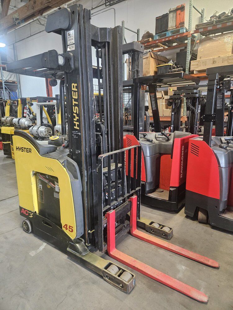 2015 Hyster 36v Stand up Reach Forklift. 4500lb lift capacity 239" lift height, Single reach. Collapsed height is 107" 3 stage mast with sideshift and tilt. Machine is in excellent condition. Comes with local Delivery and Warranty. We have a quantity of 5