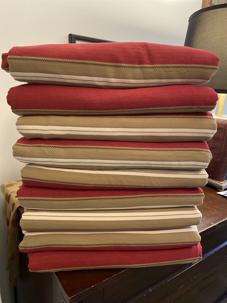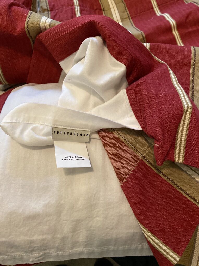 Harrison Striped Lined Curtain Panels Red Tan 9 peaces 48x81 1 panel 49x63 Smoke /pet free home Individually 20$ each
