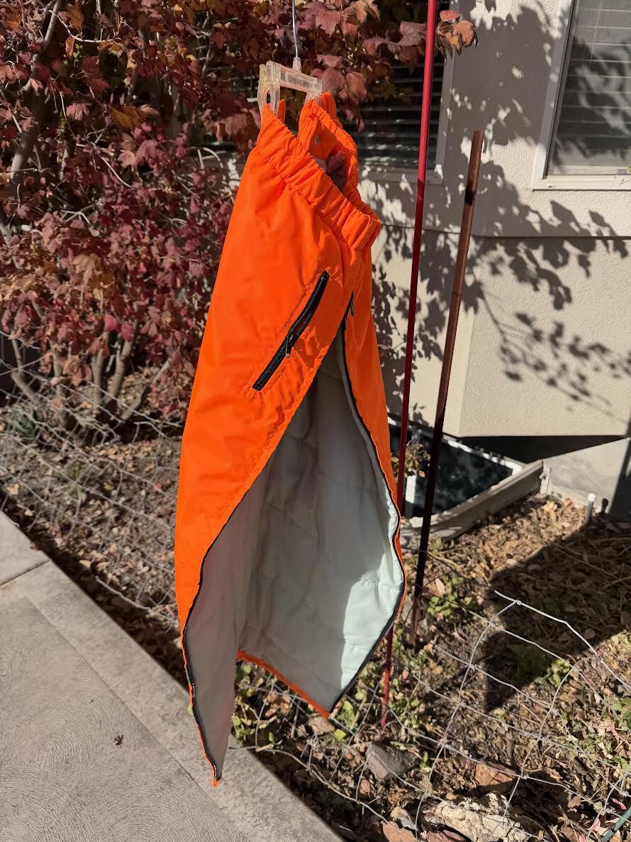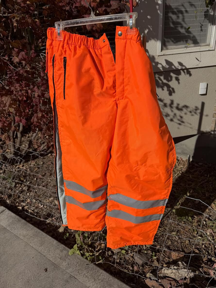 VenmoBrite Threads insulated coat and pants. Clean. Coat is medium with hood, pockets, Velcro neck, and snap cuffs. Pant is small with zipper pockets front and back, side zipper legs, and includes suspenders. Reflective striping has been re-adhered in some places. Well worn. Saratoga Springs. Cash or Venmo upon pickup.
