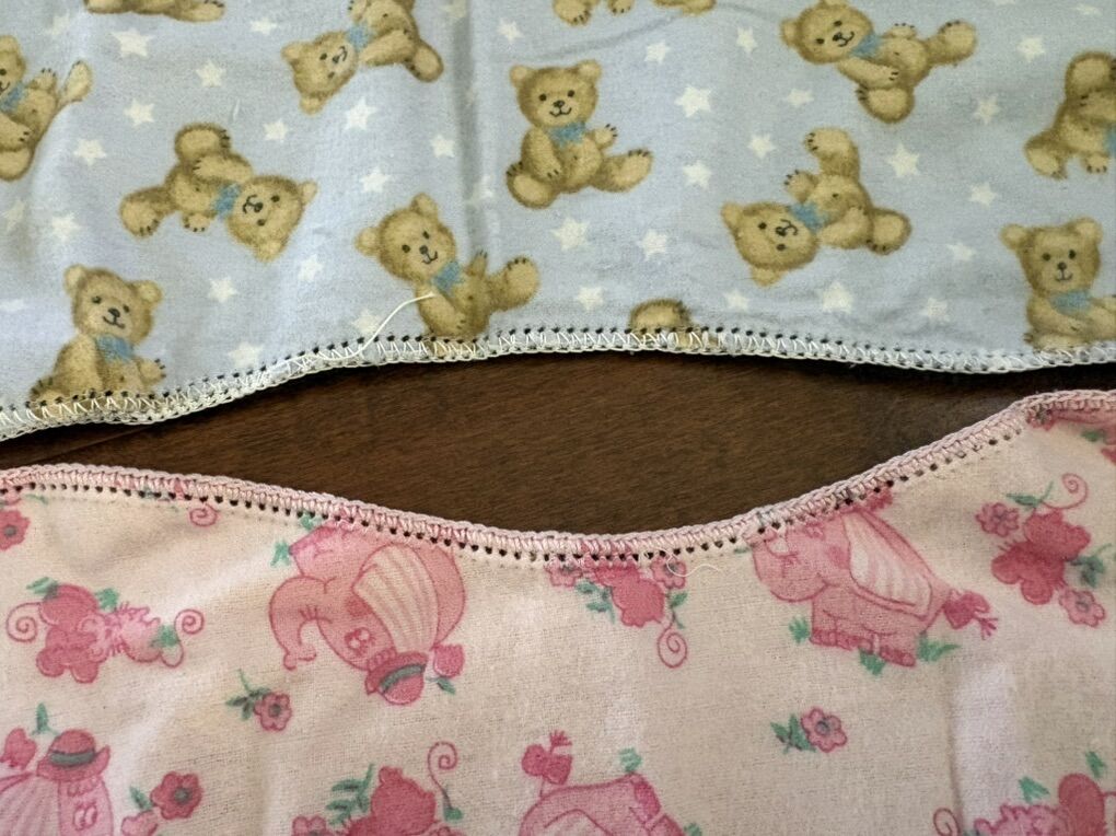 I have 2 soft handmade baby burp or spit up cloths. One is pink with elephants and the other is blue with bears. The backs are solid pink and blue with polka dots. They have never been used. The price is for both of them together. See my other ads for jewelry, artwork, home decor and more.