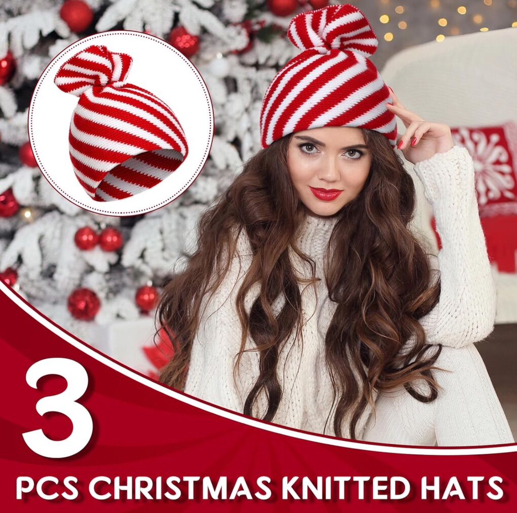 PayPalPack of 3 candy cane striped beanie style hats