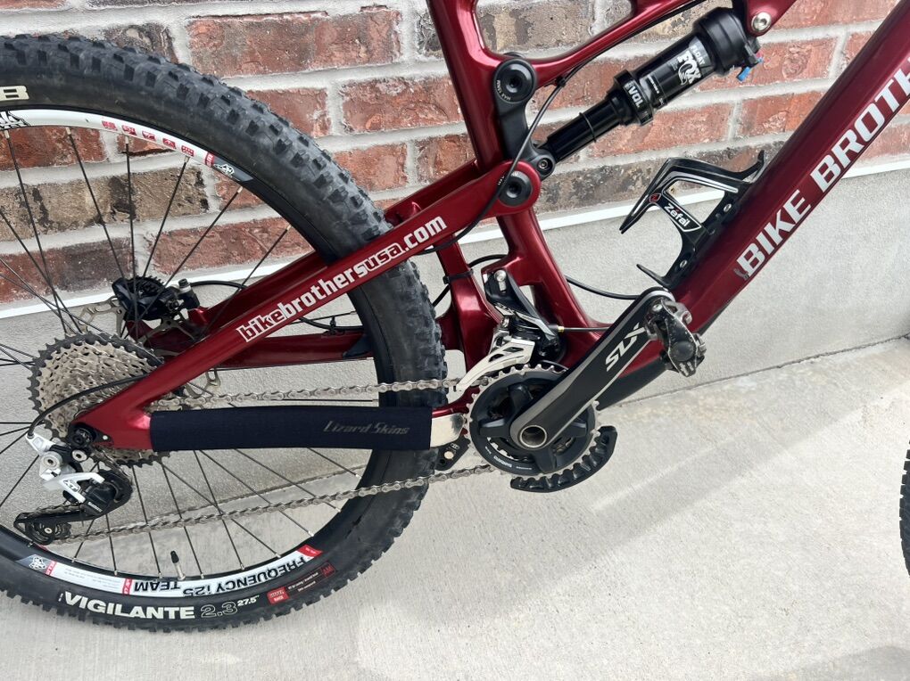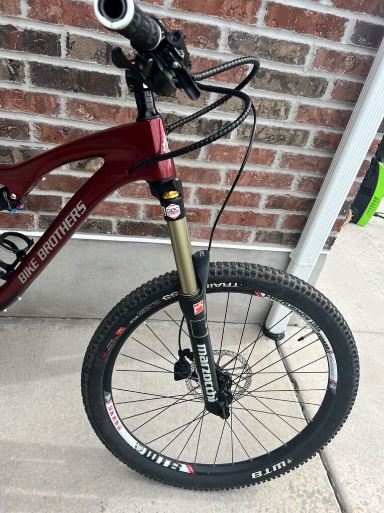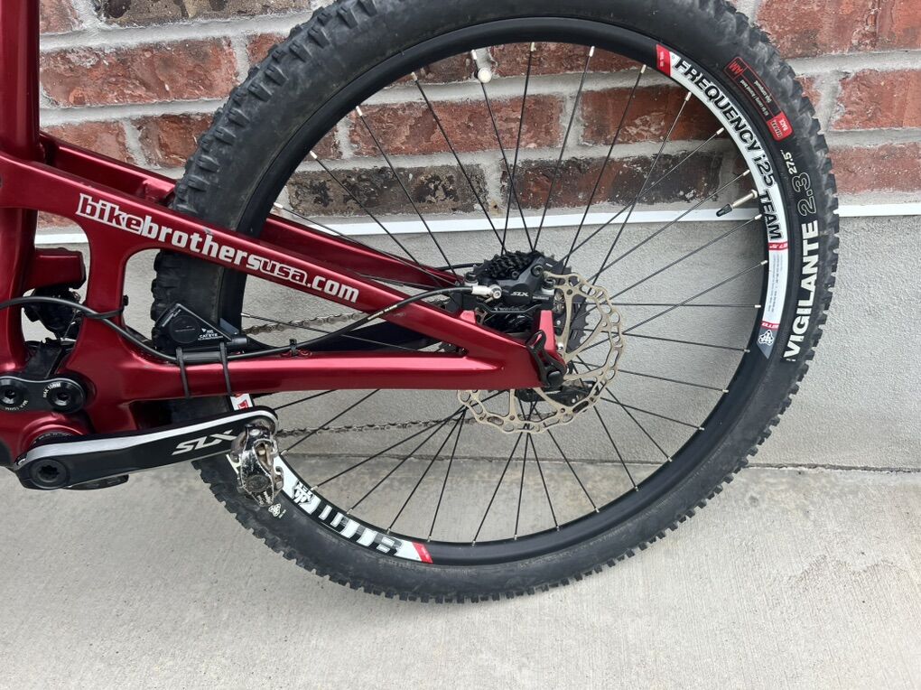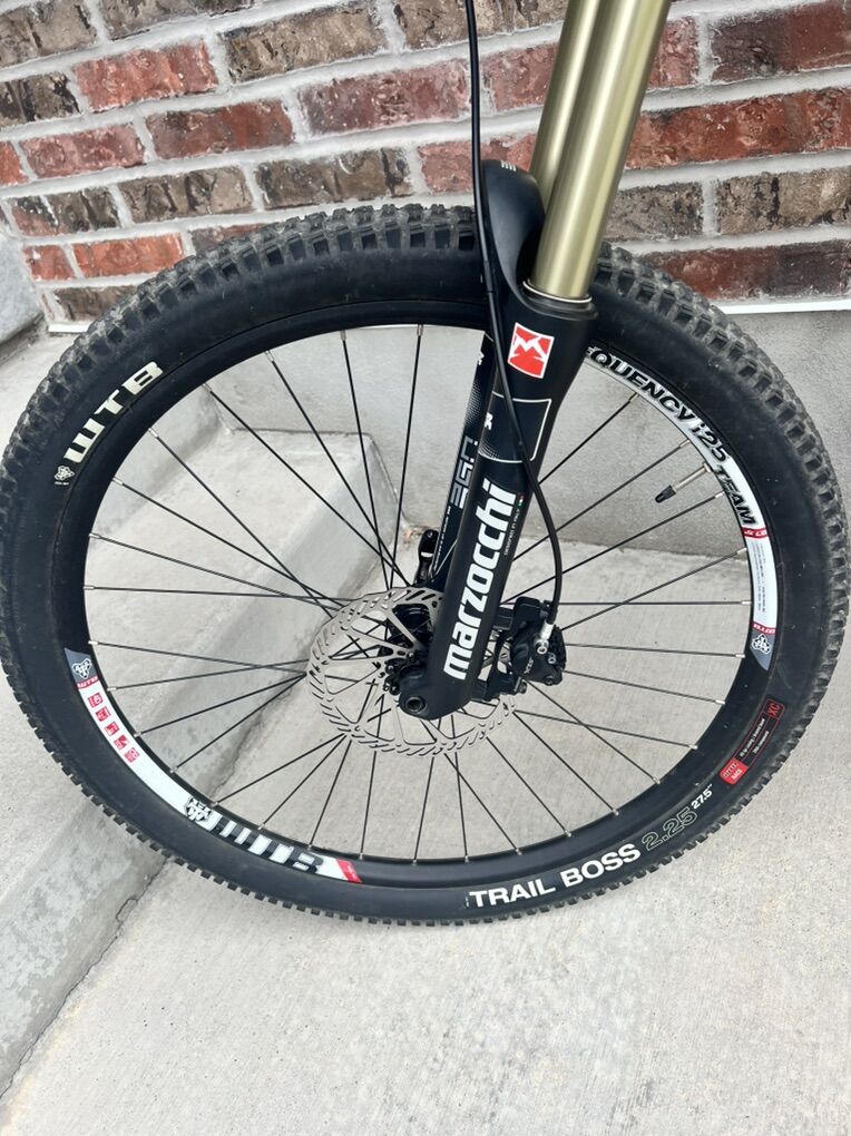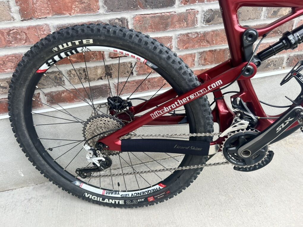 Specs shimano slx front derailleur Shimano xt rear derailleur Shimano slx crankset 34/24t Frame full carbon fiber 150 mm of travel WTB frequency i25 wheelset 27.5” 12x142 & 15x100 thru axle WTB tires 27.5” trail boss and vigilante like new Shimano slx 11-42 cassette Shimano slx chain Odessey platform pedals Lock on grips Marzocchi 350 CR suspension fork 150mm travel Fox float dps rear shock KS eteni dropper post w/ remote 150 travel Xrp bash guard sport gel seat