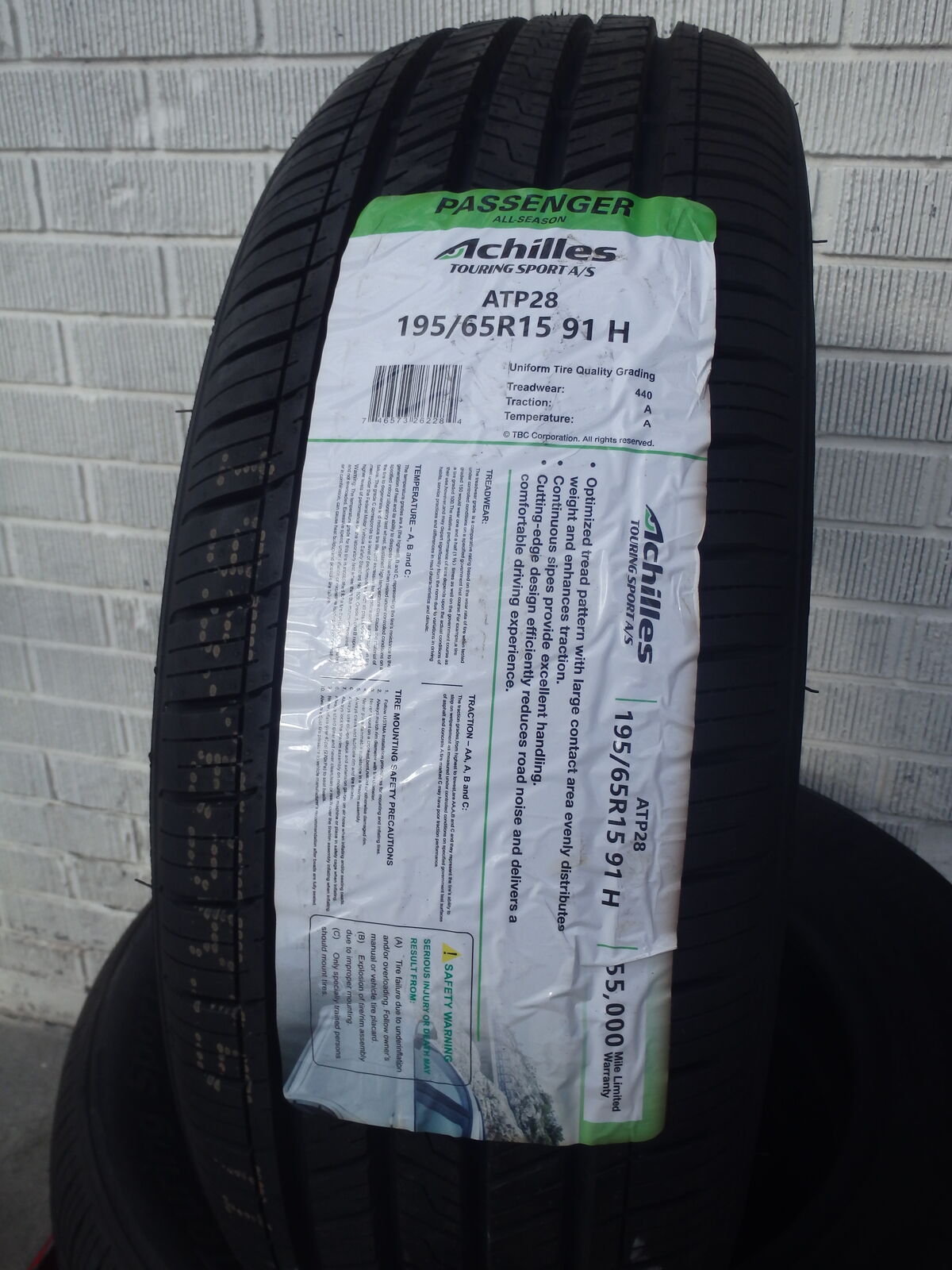 J&J TIRES & WHEELS SET OF BRAND TIRES 195/65R15 ACHILLES TOURING SPORT A/S FOR ONLY $220 THESE IS A GREAT TIRES FOR ANY WEATHER CONDITIONS, WE WILL INSTALL THEM FOR AN ADDITIONAL $20.00 PER TIRE INSTALLATION INCLUDES MOUNTING,BALANCING,VALVE STEAM AND TIRES DISPOSAL FEE,CALL FOR ANY QUESTIONS AT JOSE OR ROBERTO 801-878-4556 801-410-4460 OR VISIT US,WE'RE OPEN MONDAY TO SATURDAY FROM 9:00 AM TO 6:00 PM..WE HAVE A LOT'S A MORE AN NEW TIRES AND WHEELS CALL US IF YOU ARE LOOKING FOR A DIFFERENT SIZE....