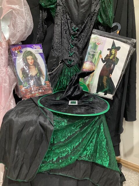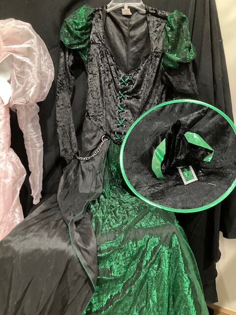 Wizard of Oz GLINDA and WICKED WITCH Set...Glinda w/ rhinestone bubble crown) -Adult M $40 Wicked WItch w/Hat and Wig-Adult S $40 Located in East Sandy