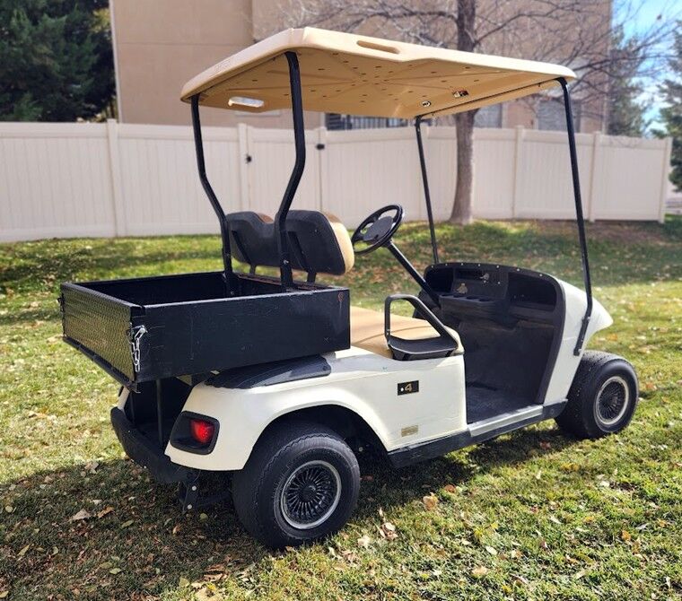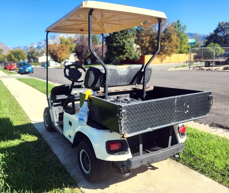 2004 EZGO TXT Electric Utility Cart – White with Lights and Cargo Box – Only $2,995. Call (435) 990-4875 in Sandy, Utah. This clean and honest 2004 EZGO TXT is ready for work. It’s perfect for the ranch, campground, or neighborhood hauling. Electric power means zero gas, zero noise, just smooth, reliable torque all day long.