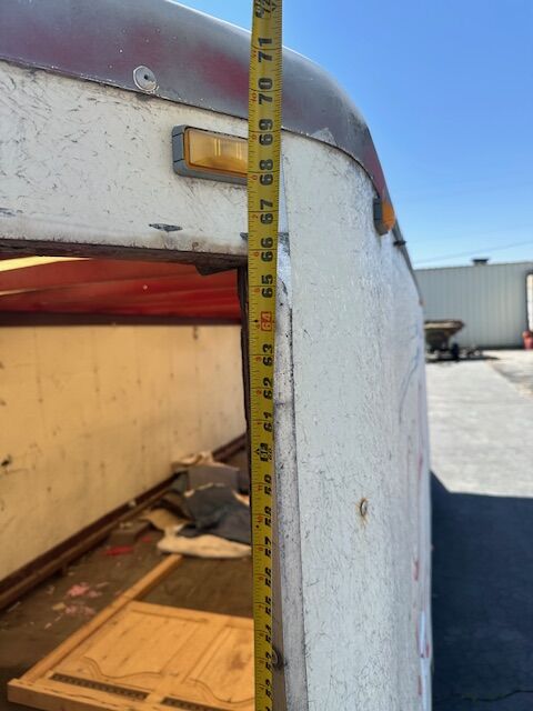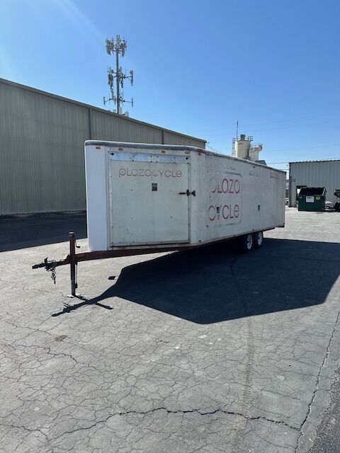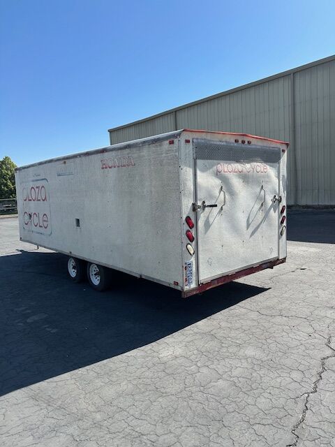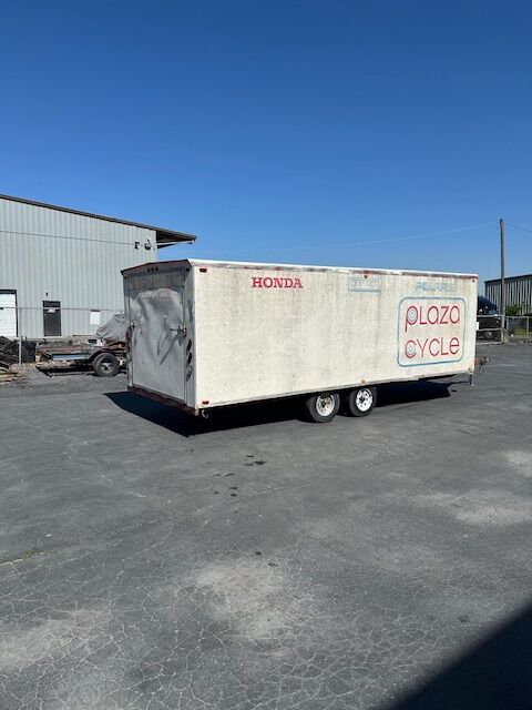 GooglePay1998 Royal Trailer Manufactured Enclosed Trailer. Aprox 21 feet of square, 26 feet from back to front of bullet, 3-1/2 foot long tongue for a total of 29-1/2 from tip to toe. Pulls really nice, have spare tires, ect.