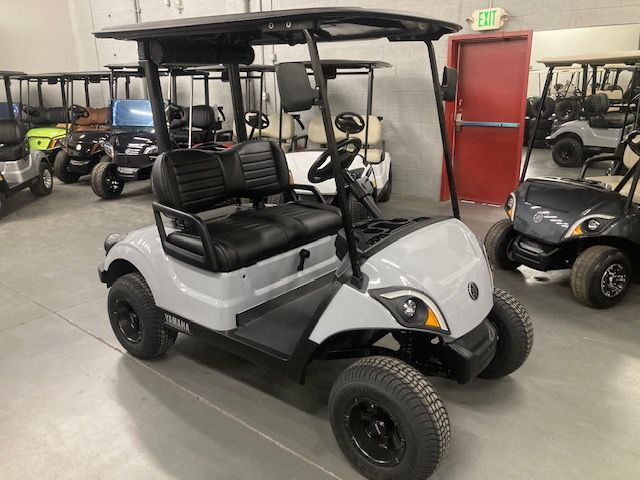 GooglePayFeatured is a 2021 Yamaha Electronically Fuel Injected (EFI) Gas Powered 357 CC 4 stroke engine built by Yamaha. Yamaha builds the best gas powered golf cart in the world. The model is a DR2A Quietech DRIVE2. This cart has tons of tricked out upgrades including, custom cement painted panels, LED headlights, taillights, turn signals, hazard, horn, mirrors, custom gray YAMAHA touring seats, 3” Rhox lift kit, custom 24” tires on black 12” wheels, black suntop, Bluetooth sound bar, dual coolers, USB ports, LED front logo, custom wheels, black top, and a full inspection and full general service. This cart is a head turner and will be a blast in the neighborhood or on the golf course. Cart is eligible for the 3 Year Warranty! We can add rear seat kits, utility boxes, ect. Come see this cart and 50 others on our showroom at Highland Golf Carts located at 3653 South 500 West or call 801-322-4653 and ask for James