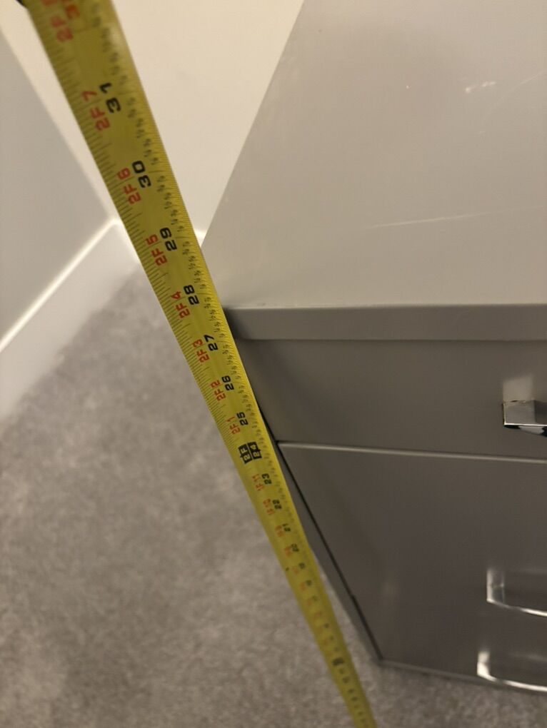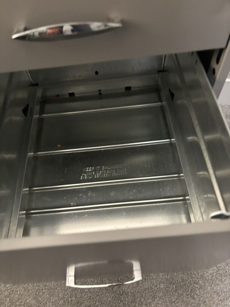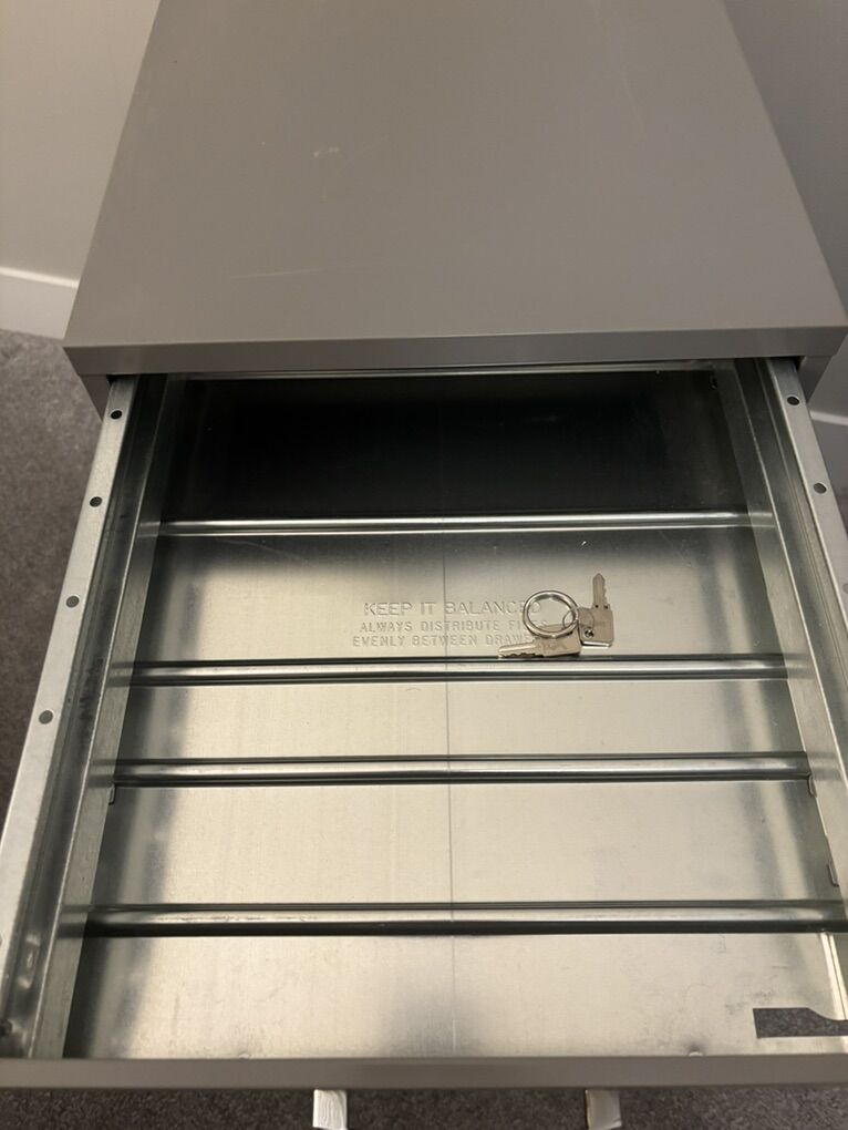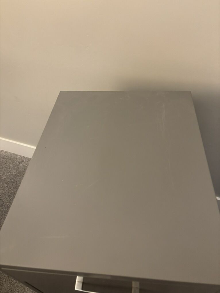PayPal3 drawer metal filing cabinet, bottom two drawers lock and has key, scratch on top of cabinet as shown in picture