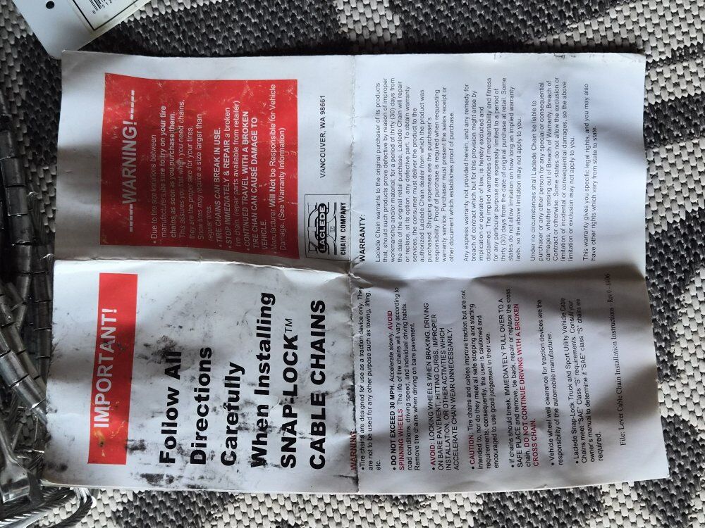 The Laclede Tire Snow Passenger Cable Chains #1026 are high-quality tire chains specifically designed for class "S" tires. Made by the trusted brand Laclede, these tire cable chains provide excellent traction and stability on snowy and icy roads. Perfect for passengers and vehicles requiring reliable winter tire performance, these chains are a must-have accessory for any car or truck operating in colder climates
