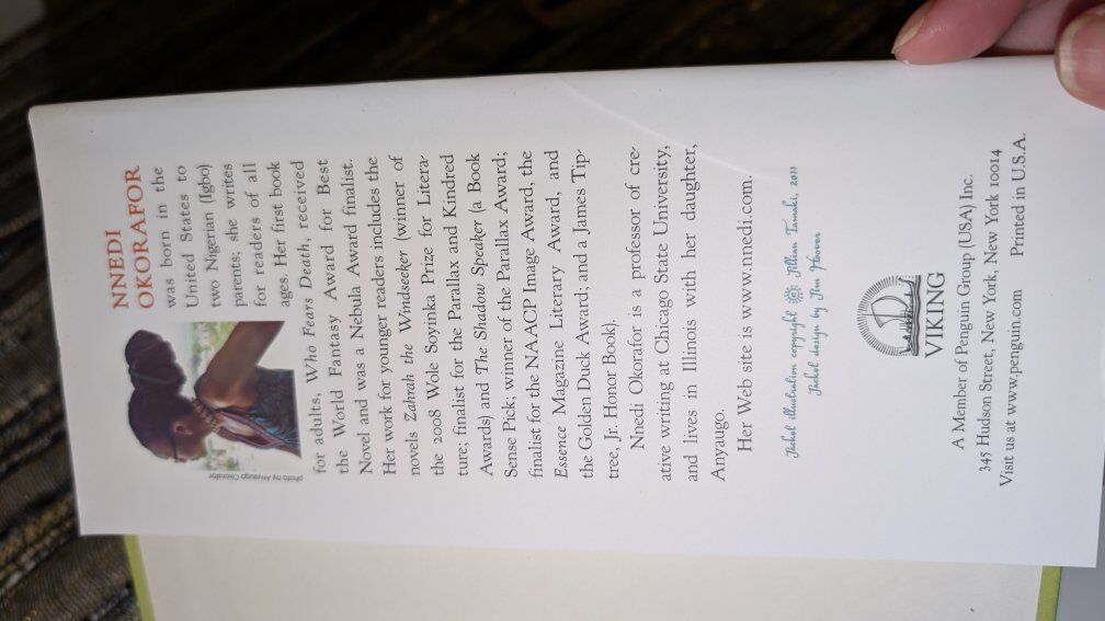 Akata Witch by Nnedi Okorafor is a young adult fantasy novel published by Penguin Young Readers Group in 2011.