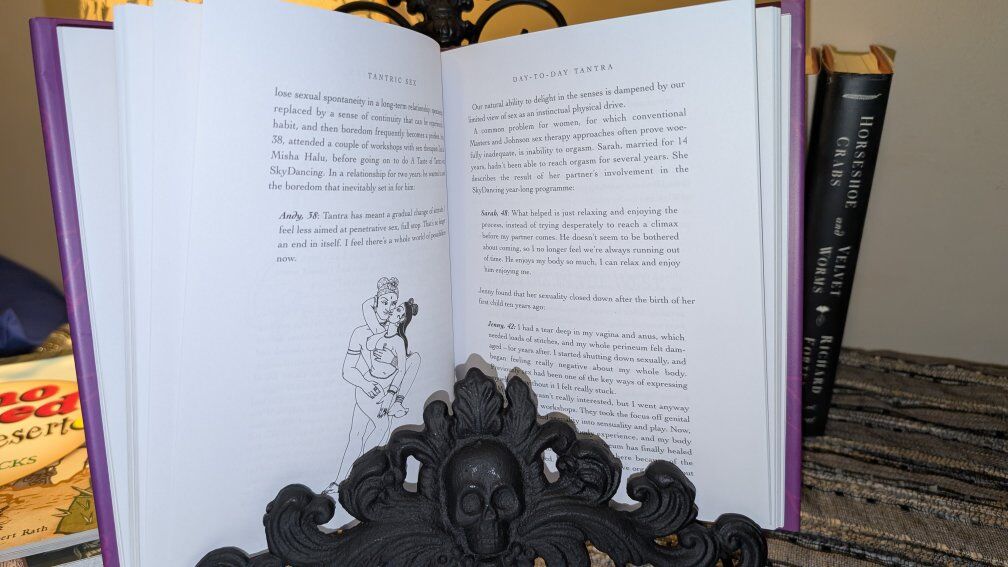 This hardcover novel explores the history and practices of tantric sex, focusing on the themes of self-help, relationships, and love.