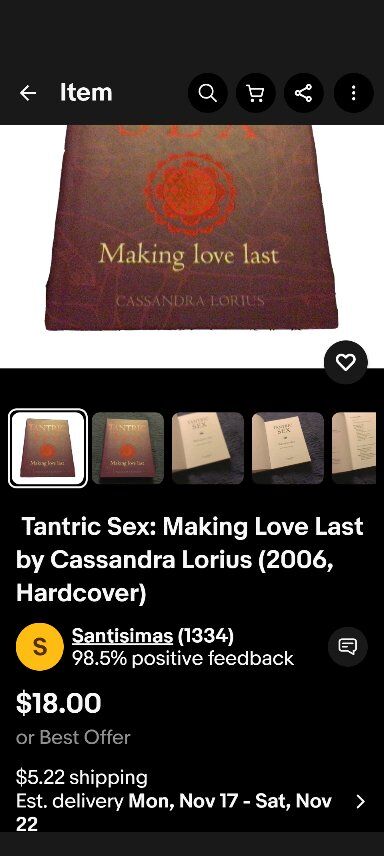 "Tantric Sex: Making Love Last" by Cassandra Lorius is a first edition nonfiction book published by Barnes & Noble in 2006.