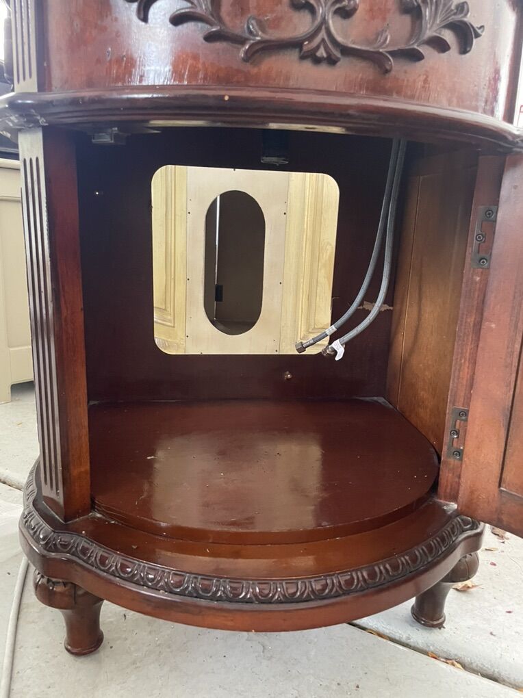 Vanity, sink and faucet.