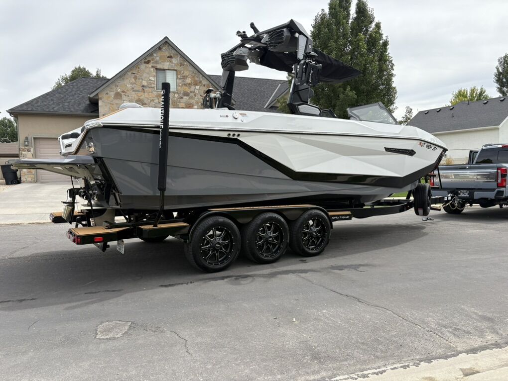 2025 Centennial G25 Nautique. Full warranty. Best boat we have ever owned! Loaded up with power tower, integrated thruster, ZZ8s supercharged motor, tandem 12” subs with upgraded stereo, nautique swivel strapless board racks, LED lights throughout including cup holders, underwater lights, slide wind dam, bow filler cushion, no throw, triple axel, list goes on and on. First service performed and all maintenance up to date. Less than 48 hours. Zero issues. Willing to store the boat as part of the deal if you don’t have a place for it this winter. Boat is stored indoors after each use. Full ceramic coated. Call or text with any questions