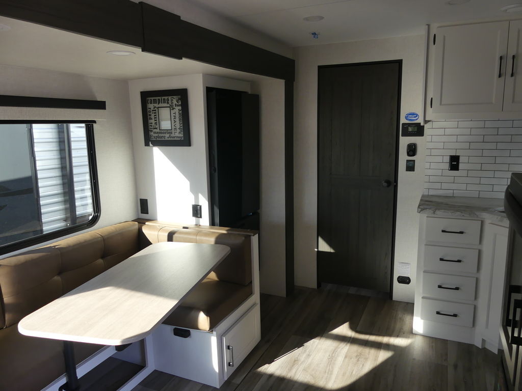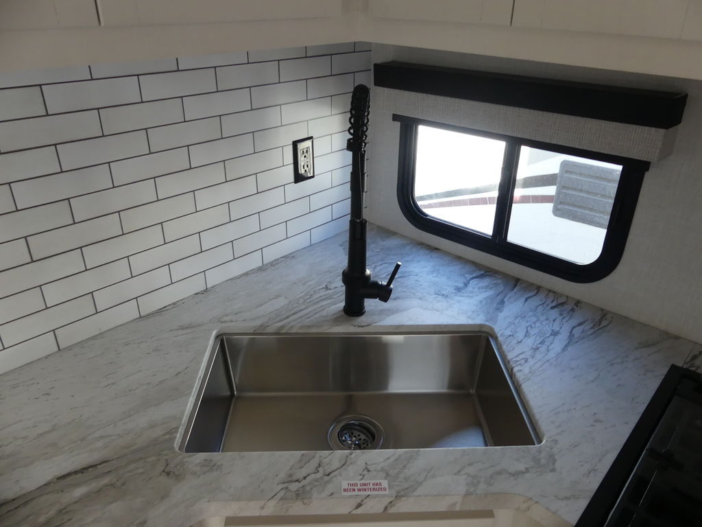 SportTrek represents user-inspired design. Purposeful residential kitchen with continuous countertops, stainless steel under-mount sink with pull-down sprayer faucet, and recessed gas cooktop with glass cover, for added counter space.