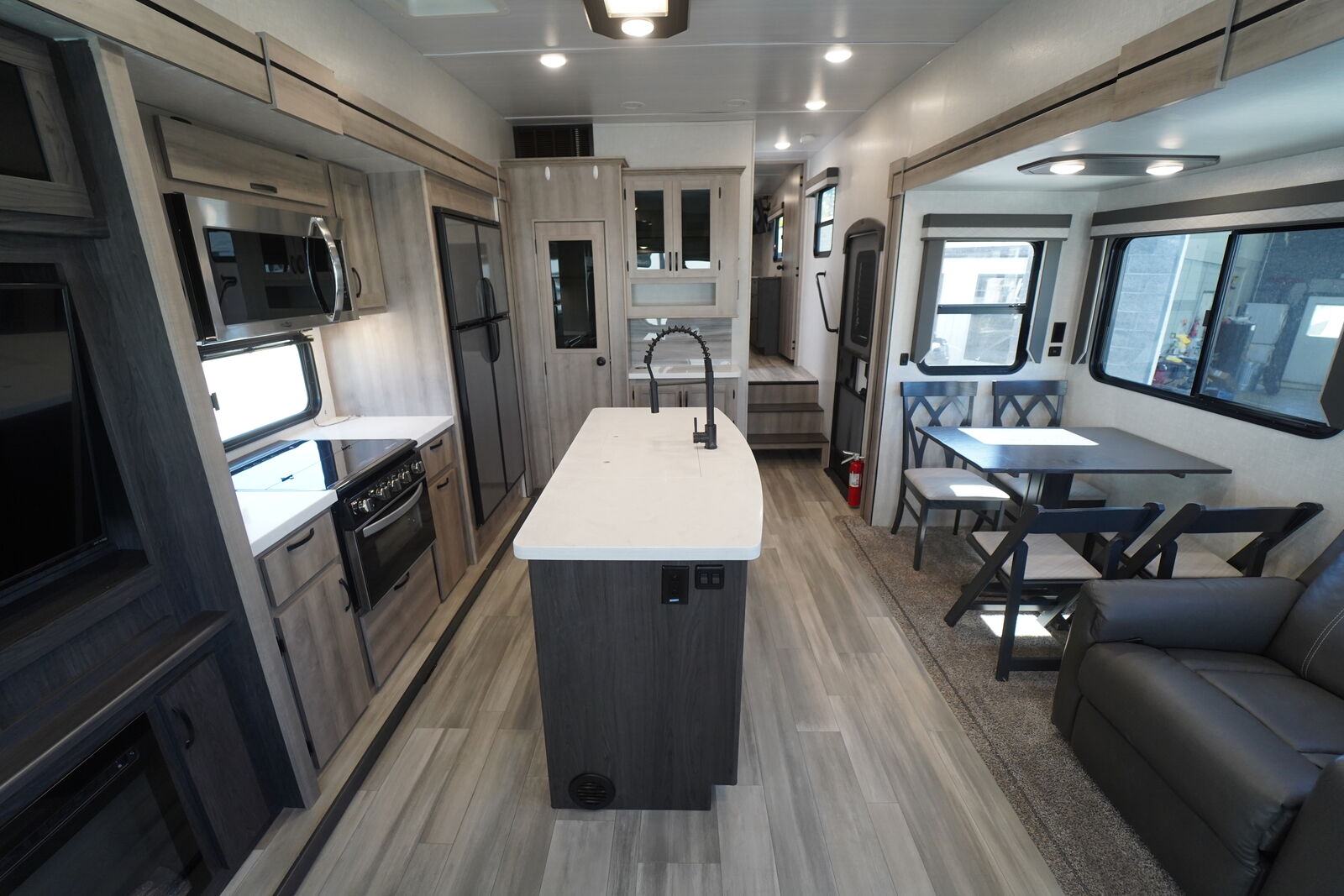 PERFECT PACKAGE! This 35 ft Rear Living model trailer is NOT TOO BIG, and NOT TOO SMALL! Measuring just over 35 ft and weighing in at 10,000 lbs, this trailer is large enough to allow for comfortable living or camping, but not too small! This size is VERY EASY to maneuver! Use this thing to live in, OR take on a quick weekender camping trip – it does it all!