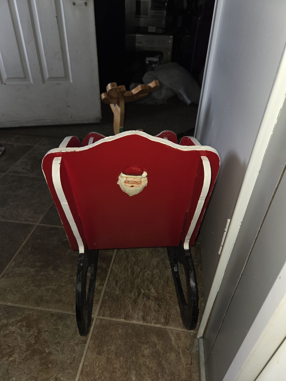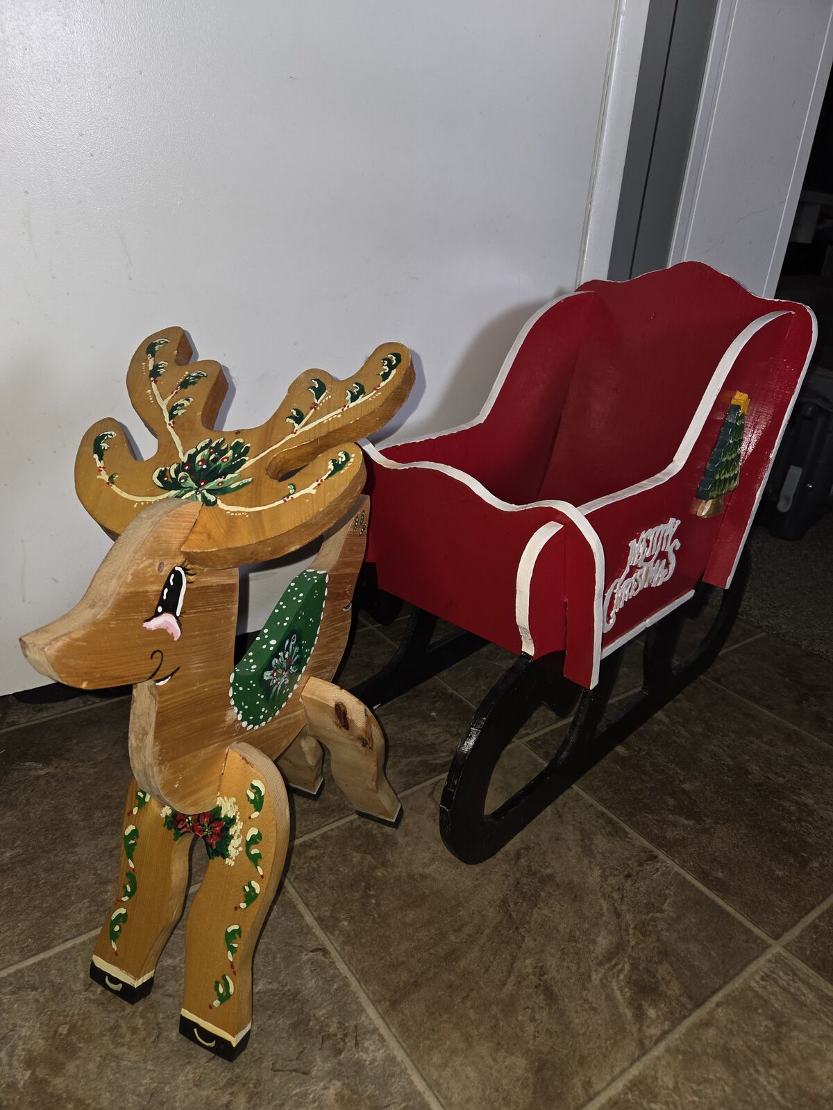 Vintage Wooden Reindeer Decoration Handmade Statue and Santa's sleigh Retro Christmas Decor