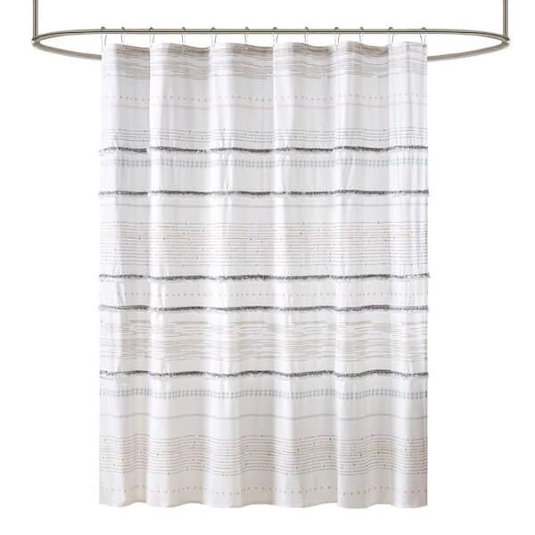 About This Product The INK+IVY Nea Cotton Printed Shower Curtain with Trims offers a stunning contemporary update to your bathroom. This 100% cotton shower curtain features tassels and a printed stripe pattern creating a chic boho look. Finished with 12 button holes at the top, this shower curtain is machine washable for easy care. Coordinating bedding set is available and sold separately.