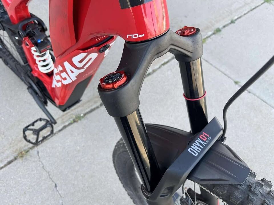 FRAME: 29", Carbon, Integrated battery, Boost, 160 mm FORK: DVO Onyx D1CV OTT, Air, 170 mm, tapered SHOCK: DVO JadeX CV Coil, Coil, 205x65 mm MOTOR: SRAM Eagle Powertrain Drive Unit, 250 W, 90 Nm BATTERY: SRAM Eagle Powertrain, 630 Wh CHARGER: SRAM Eagle Powertrain Charger, 4 A DISPLAY: SRAM Eagle Powertrain AXS Bridge Display FRONT BRAKE: SRAM Code RSC, 4-piston, Hydraulic disc brake, FRONT BRAKE ROTOR: SRAM Centerline, 220 mm, 6-hole REAR BRAKE: SRAM Code RSC, 4-piston, Hydraulic disc brake REAR BRAKE ROTOR: SRAM Centerline, 200 mm, 6-hole REAR DERAILLEUR: SRAM X0 Eagle Transmission, 12-S CASSETTE: SRAM XS-1295, 10-52 T CHAIN: SRAM X0 Eagle Transmission Flattop CHAINRING: SRAM XX Eagle Transmission CRANK ARM: SRAM X0 Eagle E-MTB SHIFT LEVER: SRAM AXS Pod Ultimate Controller FRONT WHEEL Rim: NEWMEN Evolution SL E.G. 30, Tubeless ready / Hub: 6-hole, 15x110 mm, thru axle REAR WHEEL Rim: NEWMEN Evolution SL E.G. 35, Tubeless ready / Hub: 6-hole, 12x148 mm, thru axle, TIRE: Maxxis Assegai, 63-622, 29x2.5, REAR TIRE: Maxxis Minion DHR II, 62-622, 29x2.4, STEM: NEWMEN Evolution 318.40, Ahead HEADSET: Acros AZX-579 ZS56/ZS56 HANDLEBAR: NEWMEN Advanced 318.25, 800 mm, Rise: 25 mm GRIPS: GASGAS MTB, Lock-on grips SADDLE: Selle Royal Terra Ridon X5 SEAT POST: RockShox Reverb AXS PEDALS: GASGAS, aluminum CHAIN GUIDE: Direct Mount PERMISSIBLE TOTAL WEIGHT: 130 kg