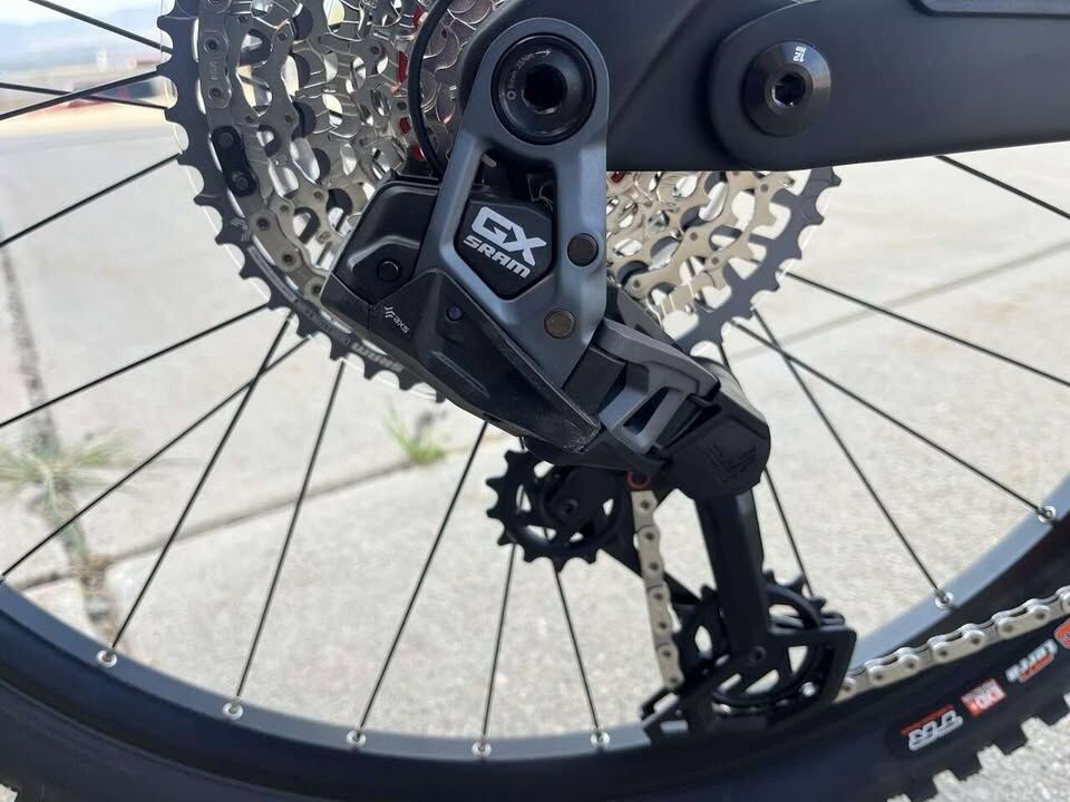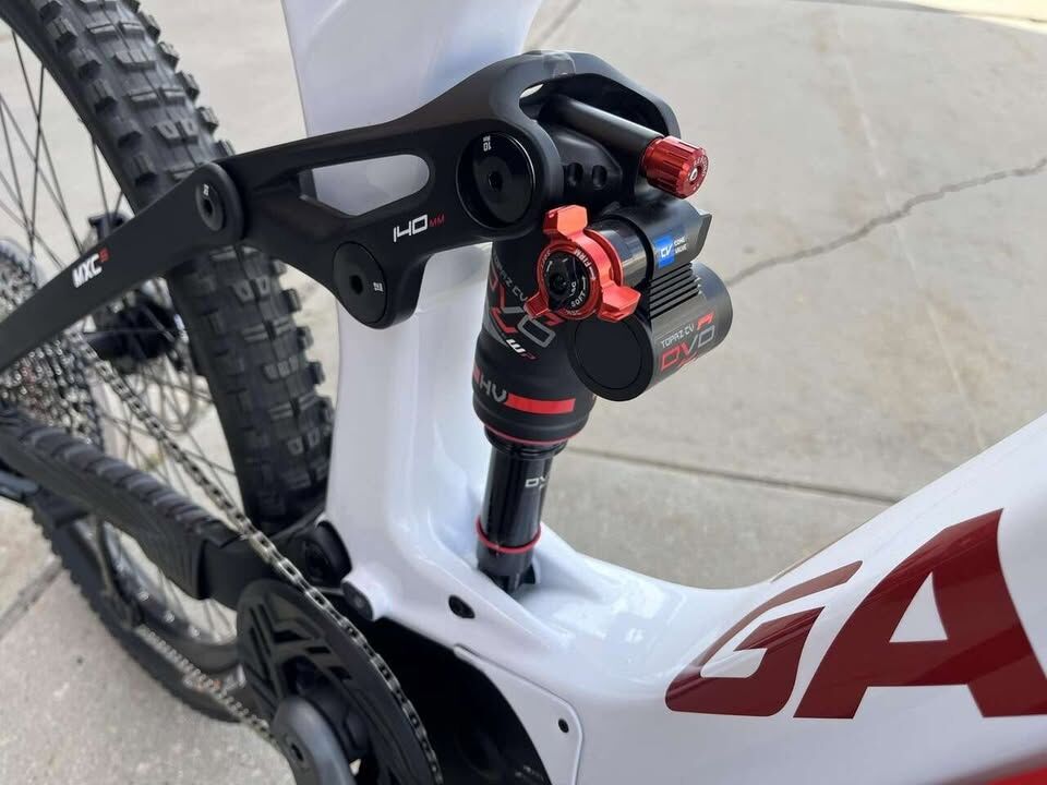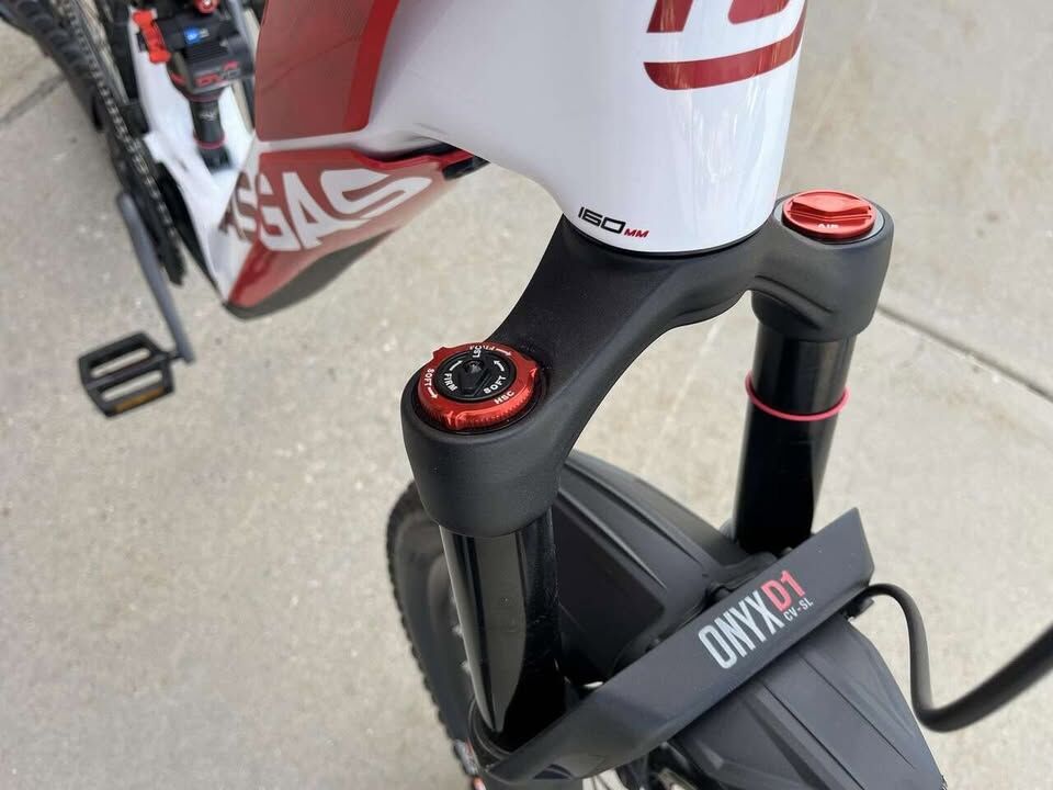 Frame29/27.5", Carbon, Integrated battery, Boost, 140 mm ForkDVO Onyx D1CV SL, Air, 160 mm, tapered ShockDVO Topaz AIR CV, Air, 205x60 mm Brakes & Drivetrain MotorSRAM Eagle Powertrain Drive Unit, 250 W, 90 Nm BatterySRAM Eagle Powertrain, 630 Wh ChargerSRAM Eagle Powertrain Charger, 4 A DisplaySRAM Eagle Powertrain AXS Bridge Display Front brakeSRAM G2 RS, 4-piston, Hydraulic disc brake Front brake rotorSRAM Centerline, 220 mm, 6-hole Rear brakeSRAM G2 RS, 4-piston, Hydraulic disc brake Rear brake rotorSRAM Centerline, 200 mm, 6-hole Rear derailleurSRAM GX Eagle Transmission, 12-S CassetteSRAM XS-1275, 10-52 T Wheels Front wheelRim: Mach 1 TRUCKY 30, With eyelets, Tubeless ready / Hub: GASGAS DA210F, 6-hole, 15x110 mm, thru axle Rear wheelRim: Mach 1 TRUCKY 30, With eyelets, Tubeless ready / Hub: GASGAS DA210R, 6-hole, 12x148 mm, thru axle TireMaxxis Assegai, 63-622, 29, 2.5 Rear tireMaxxis Minion DHR II, 62-584, 27.5 x 2.4 Cockpit StemGASGAS 35, 0 °, Ahead HeadsetAcros AZX-579 ZS56/ZS56 HandlebarGASGAS Riser 35 mm, 780 mm, Sweep: 9 °, Rise: 20 mm GripsGASGAS MTB, Lock-on grips SaddleSelle San Marco GND Seat postGASGAS Pro, 34.9 mm, Dropper post