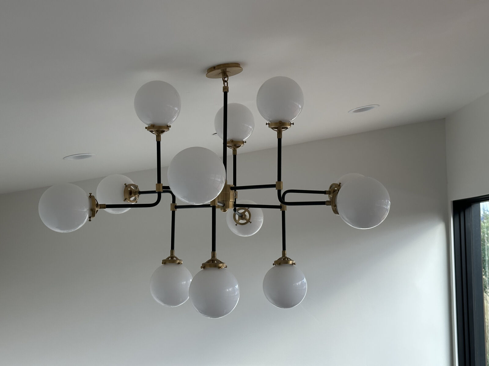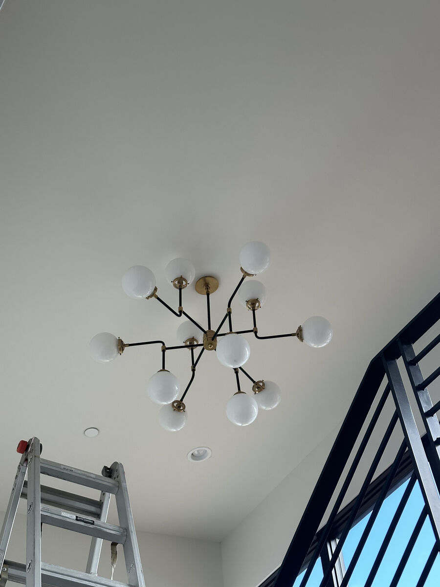 ZelleStunning Mid-Century Parlor Chandelier – Designer Style at a Steal We’re offering a premium piece from Shades of Light: the Mid-Century Parlor Chandelier in Antique Brass / Black with White Glass. Originally priced at $2,999. Why this listing is a rare find: This chandelier boasts architectural elegance with its airy frame and globe-style lights—perfect statement piece for a foyer, great room, or designer space. Shades of Light Size: 29″ H × 47″ W × 47″ D — substantial scale, high impact. Shades of Light Finish: Antique Brass with Black accents and White Glass globes—versatile mid-century flair that works with both modern and timeless interiors. Condition & availability: Light is in excellent condition (only swapped out for a redesign). Ready for immediate pickup in Park City, Utah. Ideal for installation before the holiday season—get it hung and shining! Asking price is a fraction of the original retail — incredible value for a premium designer fixture.