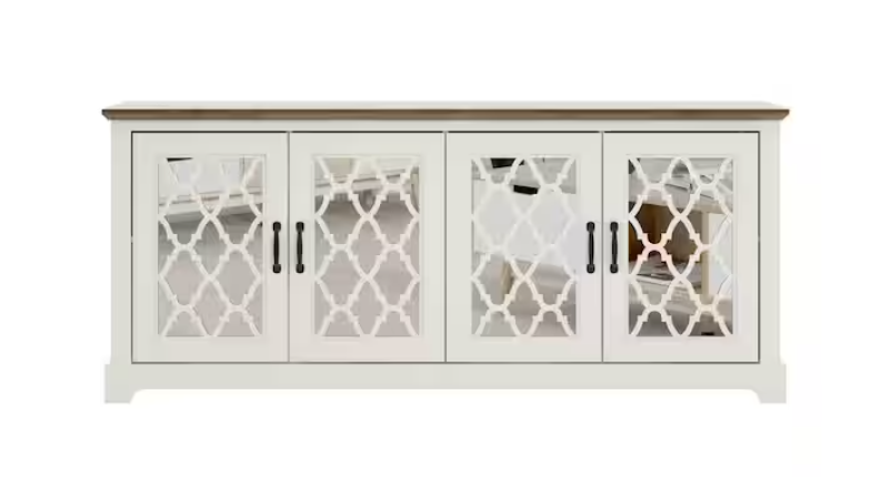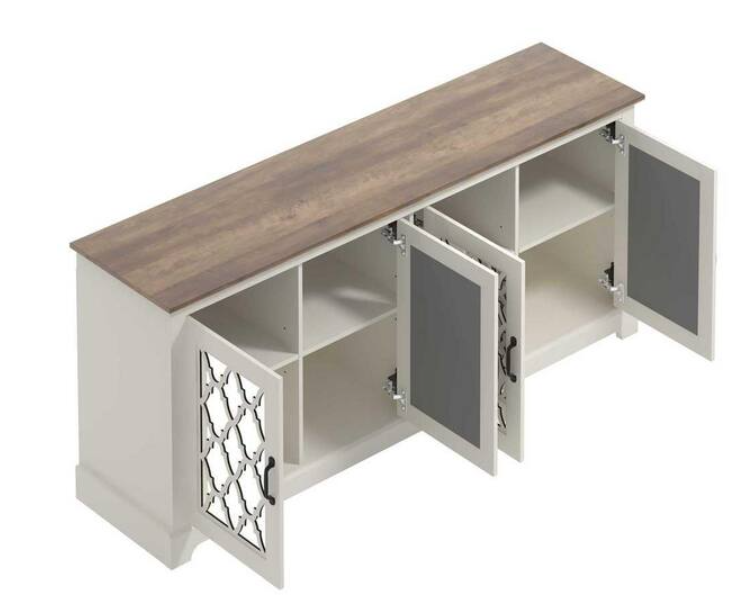 Heron 68.2 in. Ivory with Knotty Oak Mirror Backed 4 Doors Wide TV Stand Fits TV's up to 75 in.