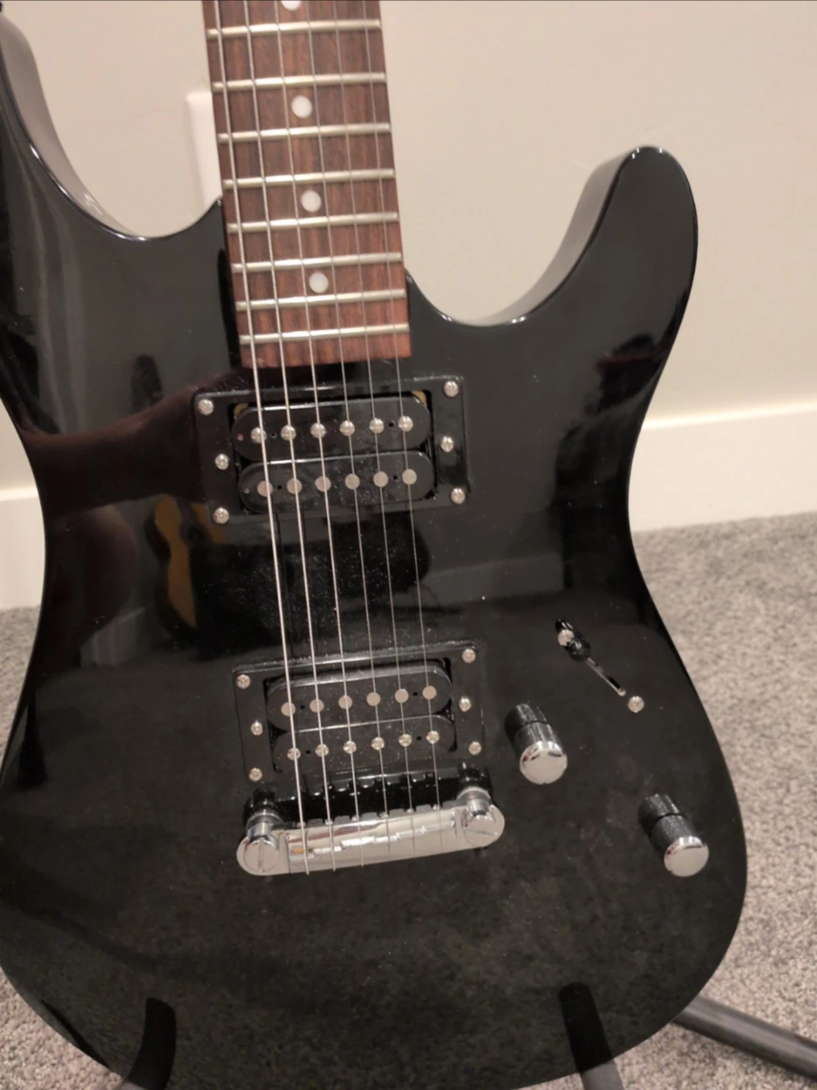 VenmoHigh-performance 6-sting solid body Canvas Electric Guitar with a sleek black color and a professional grade design. Featuring a maple neck rosewood fretboard and mahogany body. This electric guitar delivers rich tones and smooth playability. It also comes with an unused travel bag.